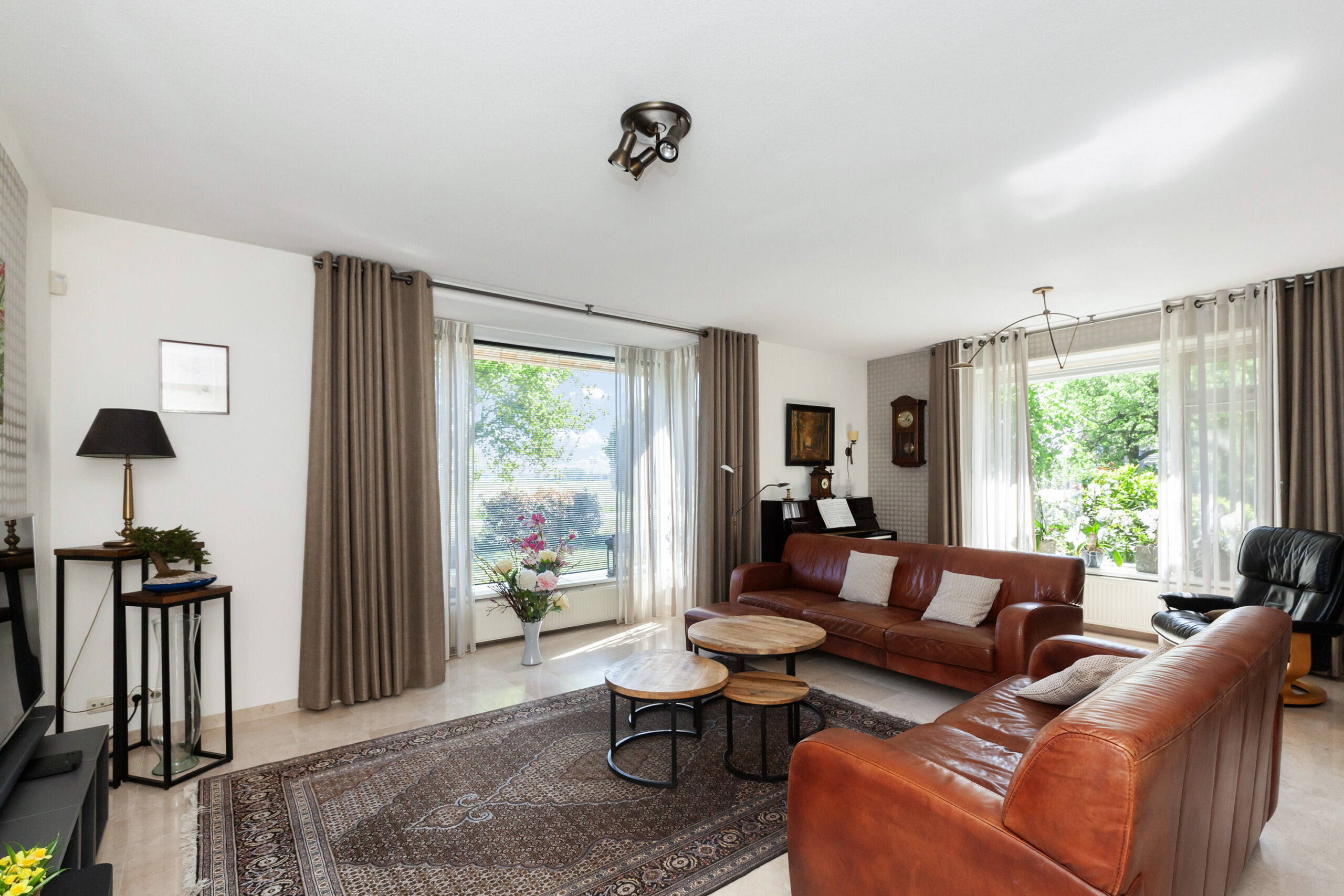 Kom binnen in deze riante living met een unieke lichtinval en geniet! Vanuit de ruim opgezette zithoek is er heerlijk uitzicht door de erker over het groene landschap en zorgt voor een fijn samenzijn. De ramen in de erker zijn voorzien van kunststof kozijnen. Aangrenzend heeft u de eetkamer waar u uitgebreid kunt tafelen met familie en gasten. De elektrische haard zorgt voor extra sfeer. Doordat in 2005 de kamer is uitgebouwd, kunt u nog een gezellige zit- of speelhoek creëren.