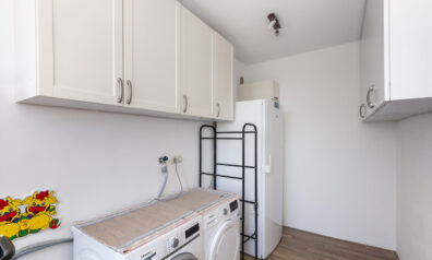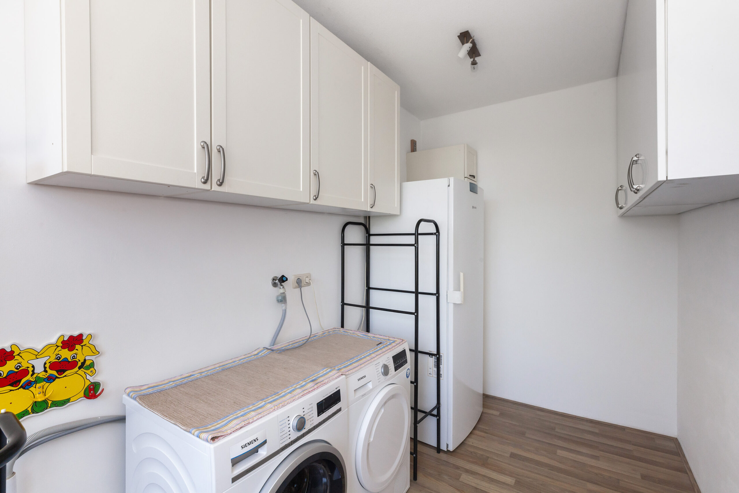 De bijkeuken is een ruimte waar u veel plezier van zult hebben. Doordat deze de achterdeur heeft naar de tuin, komt u hier binnen als u achterom komt. Een fijne ruimte om bijvoorbeeld jassen en schoenen op te bergen. Tevens heeft u hier de aansluitingen van uw wasmachine en droger.