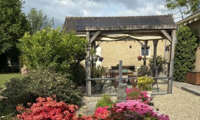 In het grote gazon staan diverse fruitbomen zoals pruimen-, appel- en perenbomen. Loopt u verder door uw tuin komt u bij een beschut terras bij een houten berging (circa 2.77 x 2.28m). De tuin aan de zijzijde is in lijn met het gehele perceel en volwassen bomen geven u het ultieme gevoel van een royale buitenbeleving. Kortom; het is op elk plekje genieten!