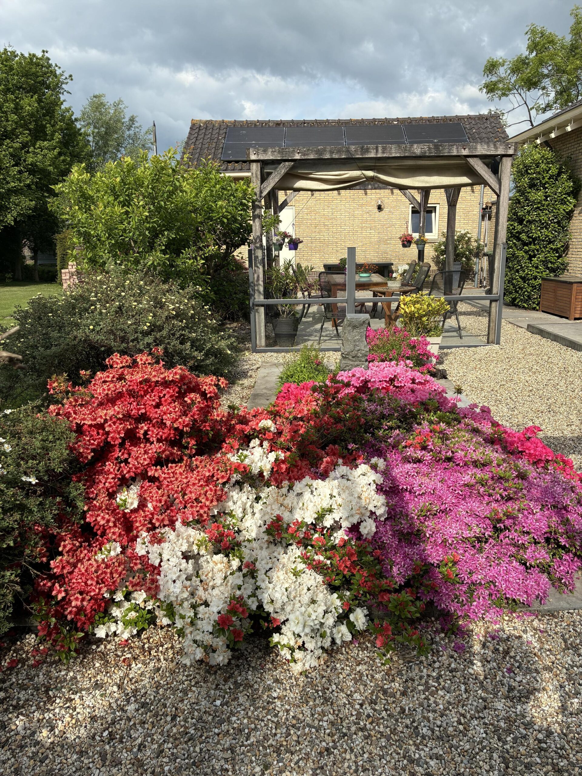 De perceeloppervlakte is 2840 m² en grotendeels voorzien van een frisgroen gazon. Laat de robot grasmaaier het werk doen! Direct achter de woning is een brede grindstrook met verschillende terrassen. De plantenborders schitteren met verrassende kleuren langs zitjes.