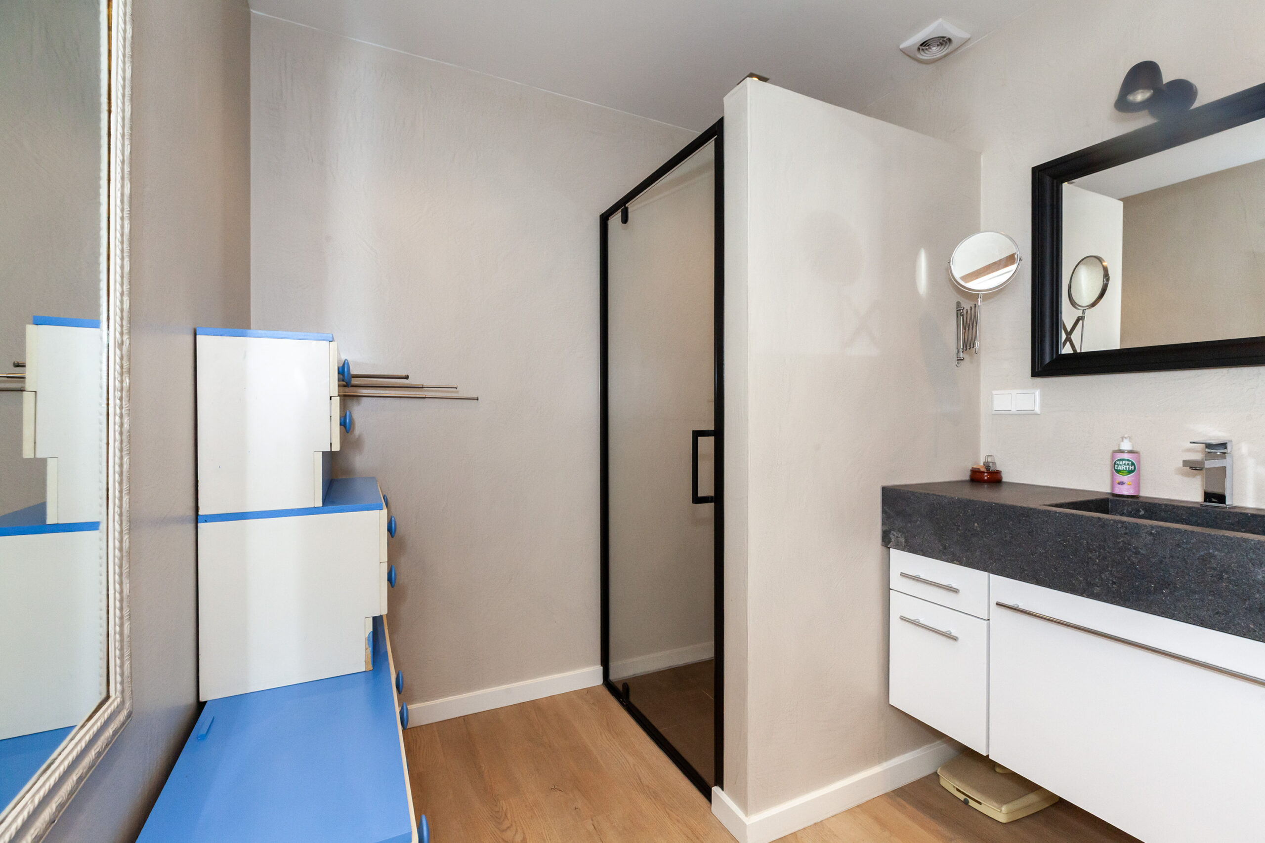Het fijne is dat er op zowel de eerste verdieping, als in het onderhuis een aparte toiletruimte is. Deze ruimte is voorzien van een vrijhangend closet.