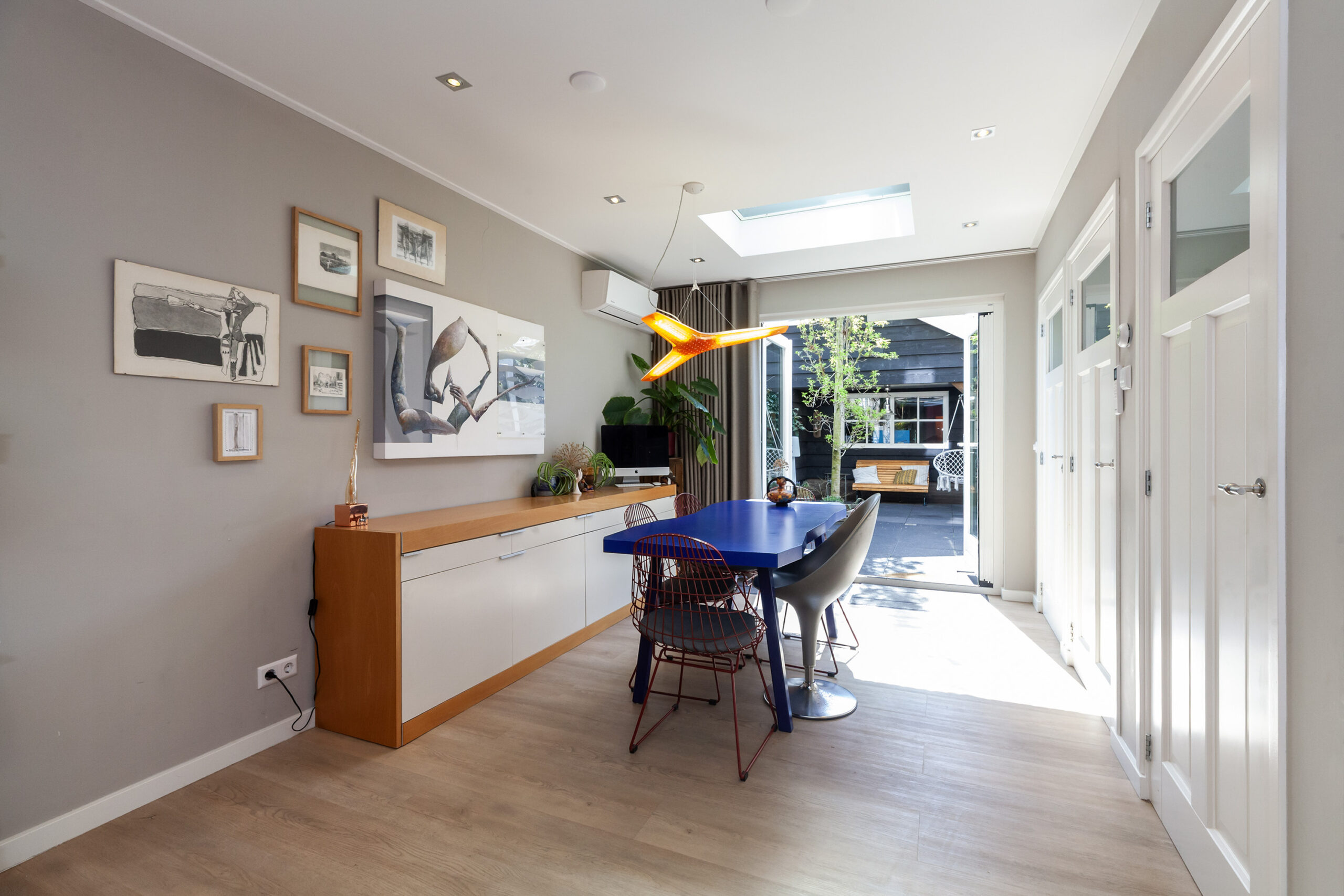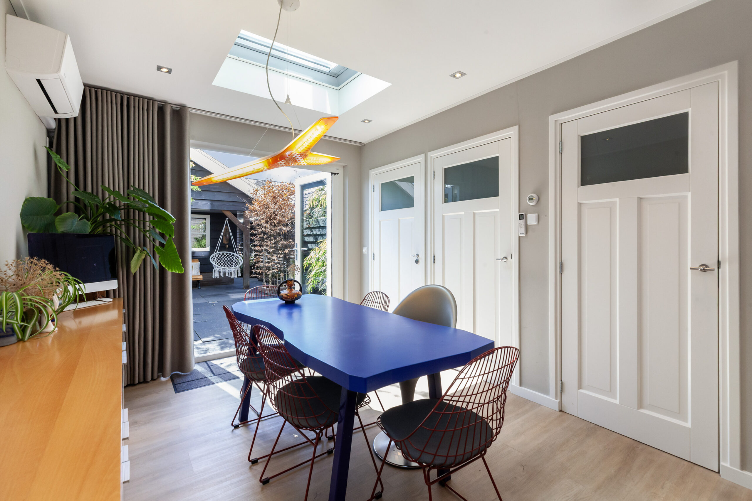 Hier zult u helemaal veel zijn! Deze ruim opgezette woonkeuken is praktisch ingericht met een keukenopstelling en alle ruimte voor een uitgebreide eethoek. Hier heeft u een lichtkoepel en een airco. De keuken is voorzien van een inductiekookplaat, afzuigkap, combimagnetron en vaatwasser. Bij de eethoek heeft u een toiletruimte, C.V.-ruimte en opbergkast met de meterkast. En zegt u het zelf; de openslaande deuren nodigen u uit om te openen en fijn de tuin in te gaan.