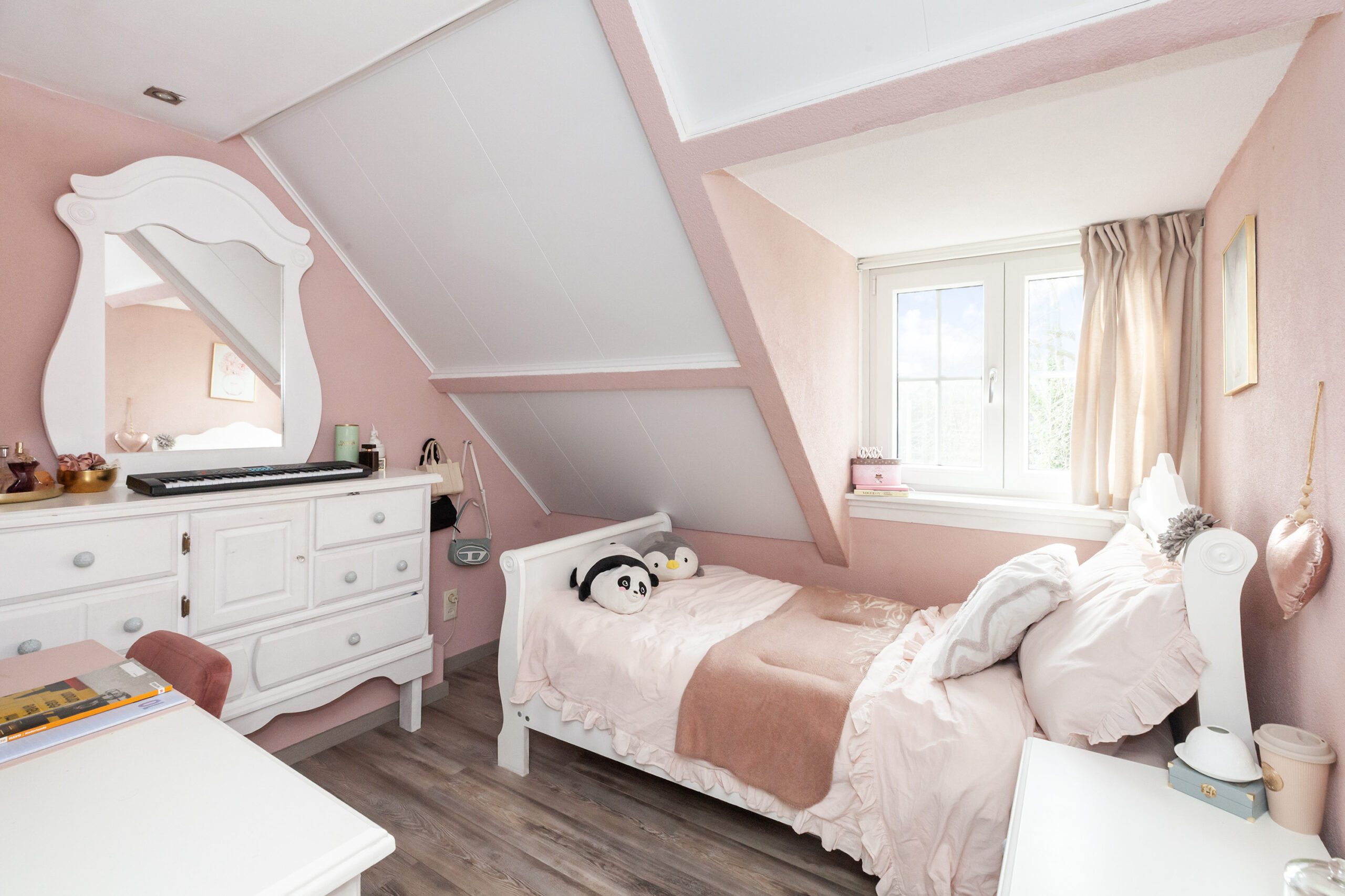 Aan de voorzijde treft u deze derde slaapkamer welke voorzien is van een dakkapel samen met slaapkamer IV.