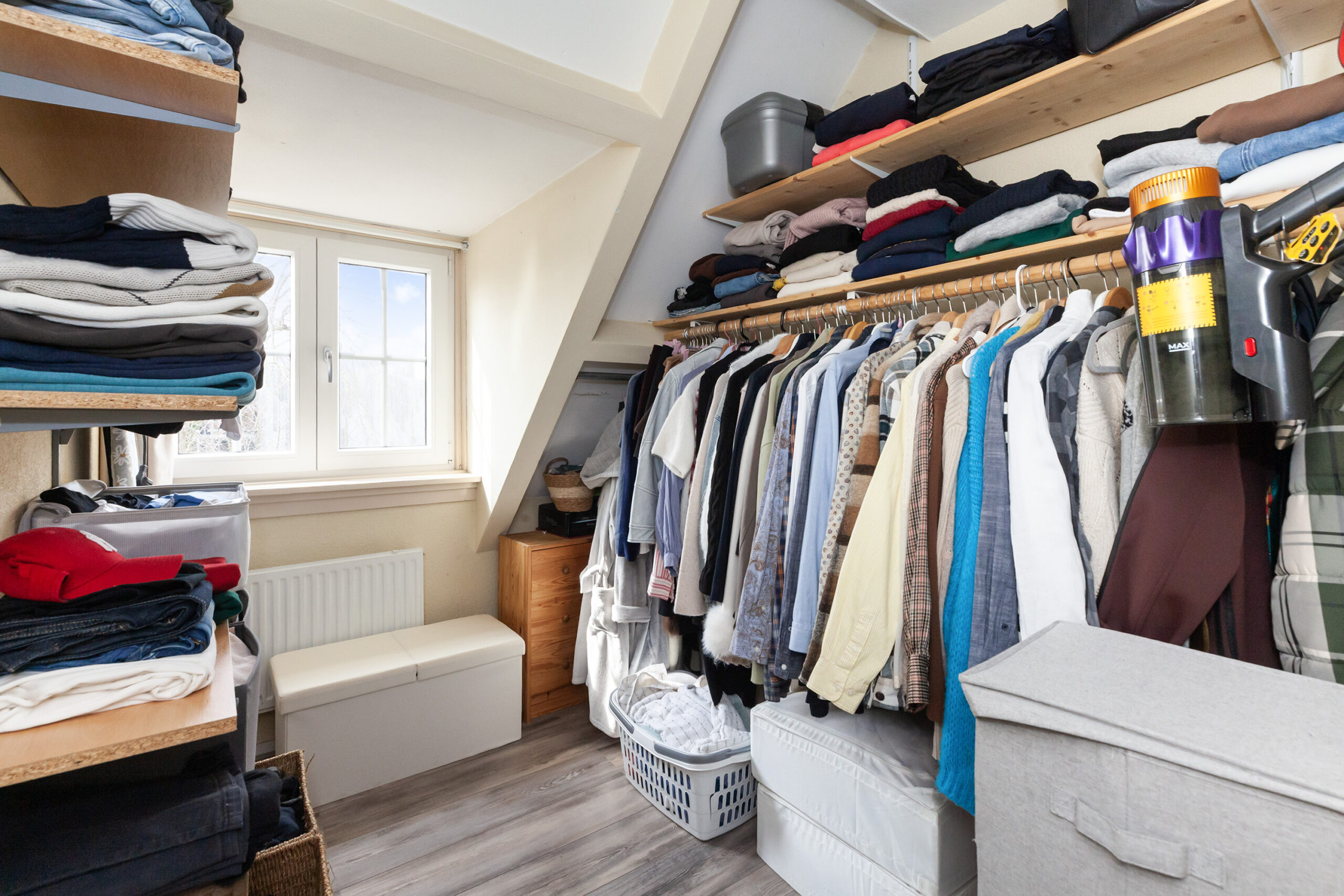 Tot slot deze laatste slaapkamer welke in gebruik is als kledingkamer.