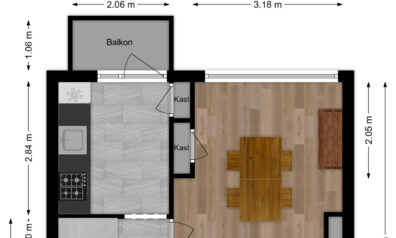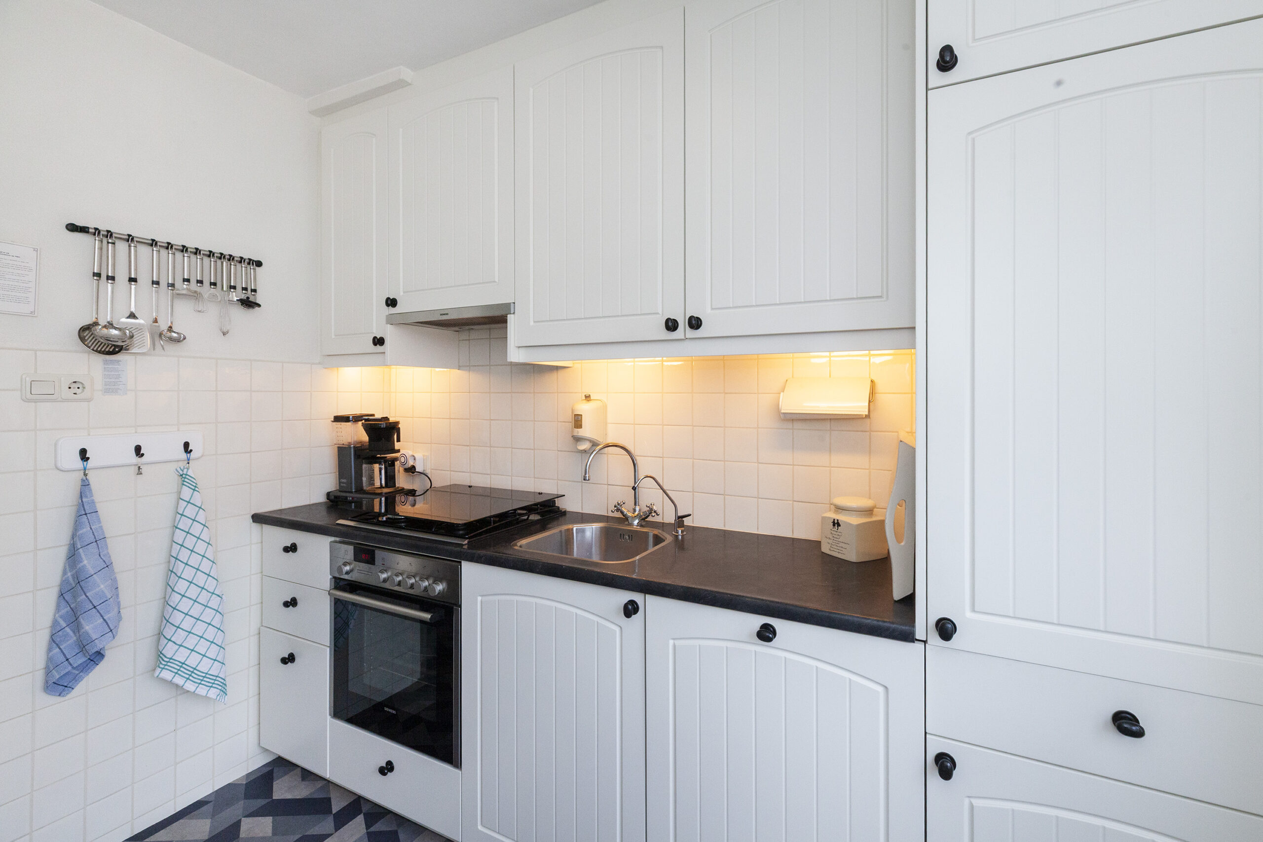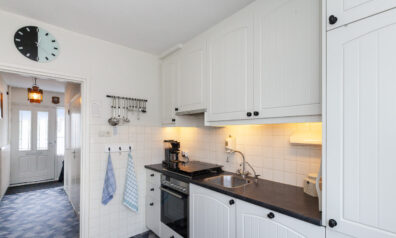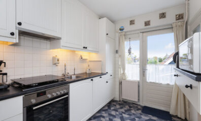 Zoals gezegd komt u vanuit de hal in deze lichte keuken. Hier heeft u een rechte opstelling met aan inbouwapparatuur een 4-pits gaskookplaat, afzuigkap, vaatwasser, oven en koelkast. Daarnaast is er een close-in boiler zodat u snel warm water heeft. Aan de achterzijde is er toegang tot een balkon van circa 2.06 x 1.06m.
