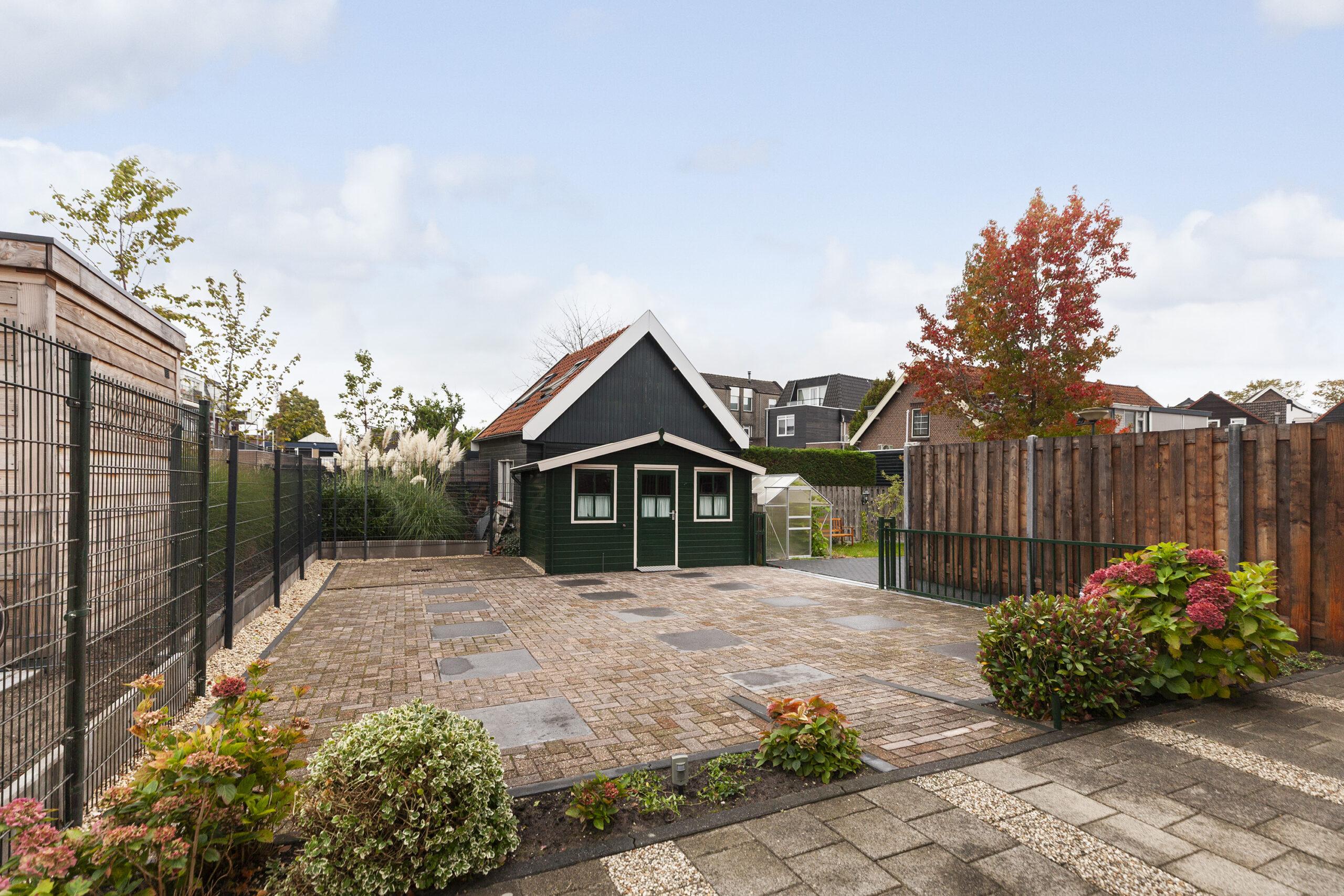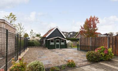 Achterin de tuin staat een houten berging van circa 4.15 x 2.64m en naast de woning ligt een pad, zodat u via de zijzijde naar voren kunt lopen. Daarbij is er recht van overpad gevestigd met de naastgelegen buren, zodat u achterom kunt komen met de auto en dus van parkeergelegenheid bent voorzien op eigen terrein!