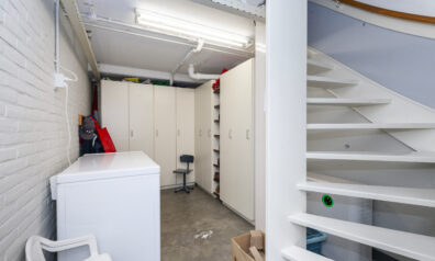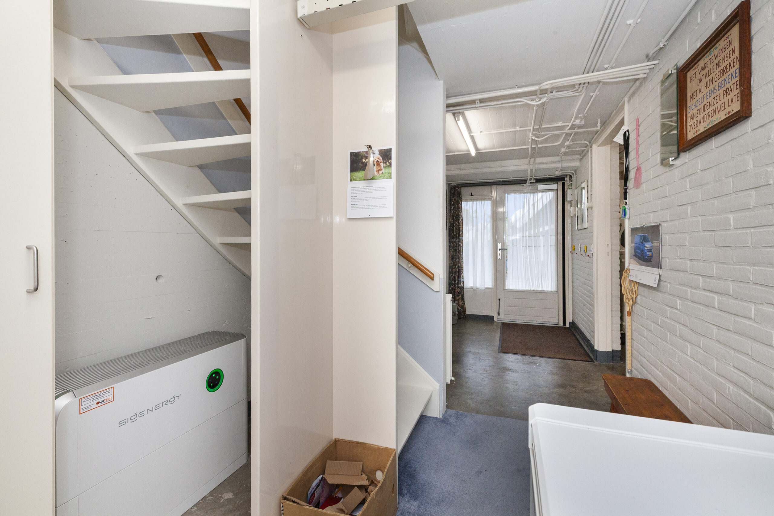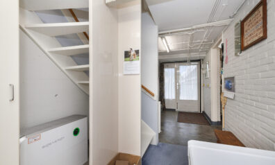 In deze zogeheten ruimte I heeft u de trap naar de woonverdieping en toegang tot de achtertuin. Daarbij heeft u onder de trap de thuisbatterij staan van de zonnepanelen. Er is verder stroom en een radiator aanwezig.