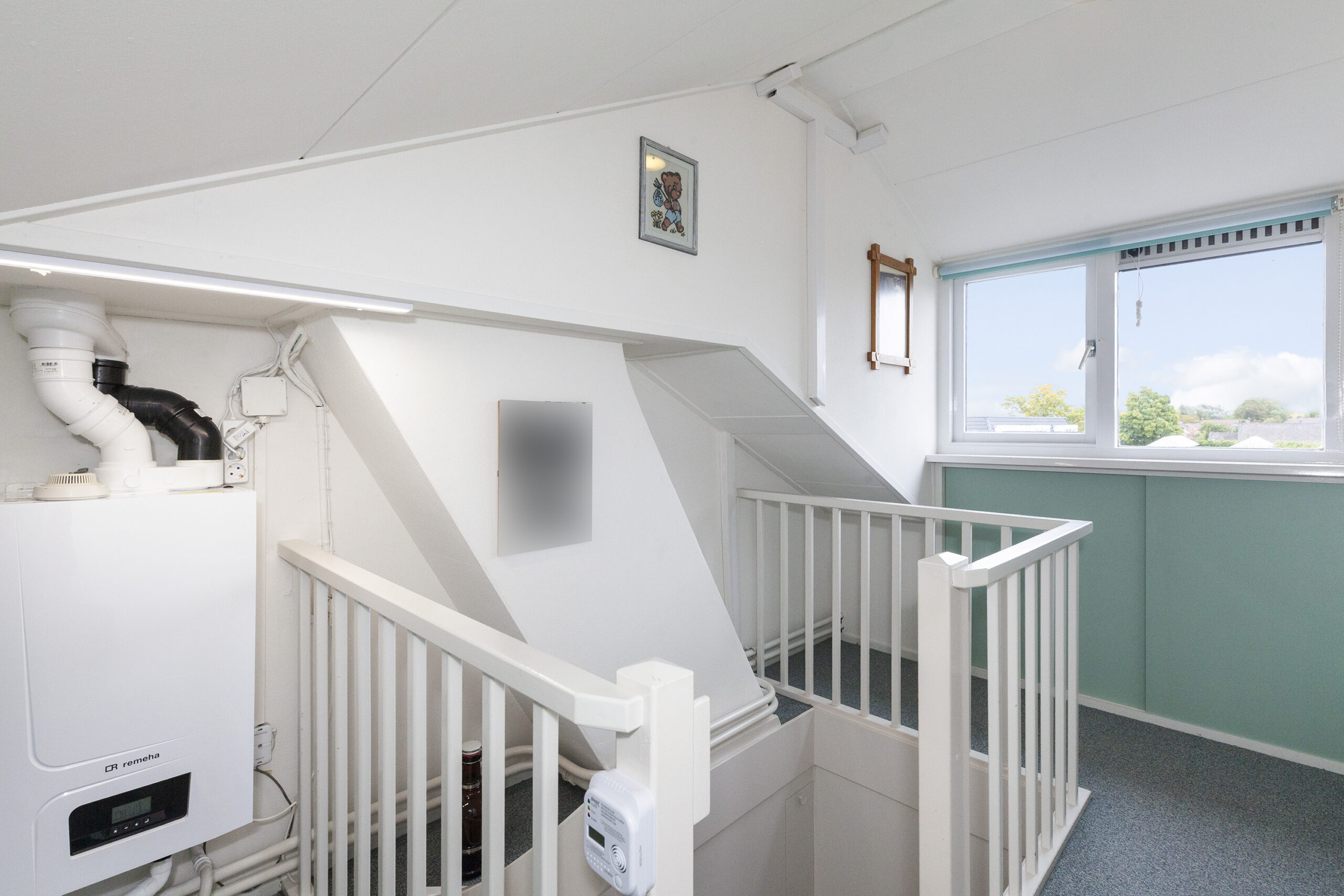 In 2002 is er een dakopbouw geplaatst waardoor er een volwaardige tweede verdieping is ontstaan. Daar heeft u hier volop profijt van, want naast de overloop is er nog een vijfde slaapkamer. Op de overloop zelf hangt de C.V.-ketel (dit jaar geplaatst) en aan beide zijden is er bergruimte onder de schuine dakdelen.
