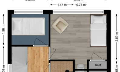 De eerste verdieping kenmerkt zich door een viertal slaapkamers en badkamer. Daarbij hangt er een airco (geplaatst in 2020) waar u op de gehele verdieping plezier van heeft. Naast de trap naar de tweede verdieping is een kastdeur waarachter de leidingen zitten verborgen.