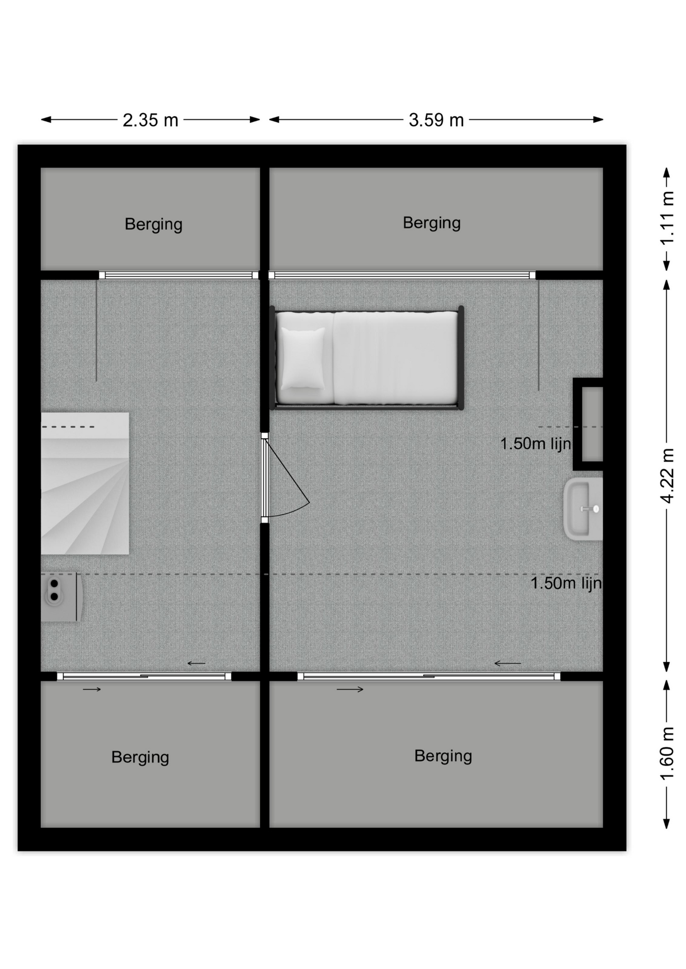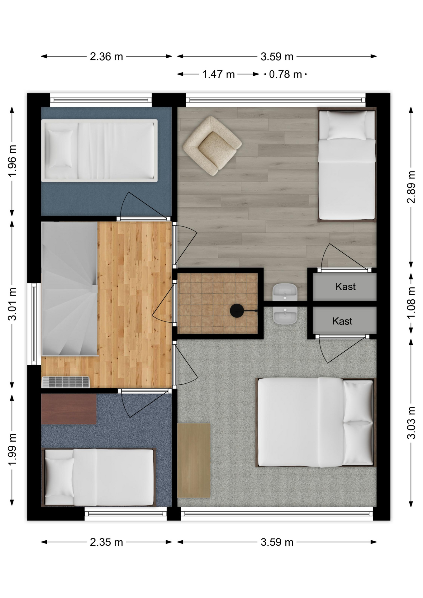 Maatvoering: Circa 3.59 x 3.03/3.62m