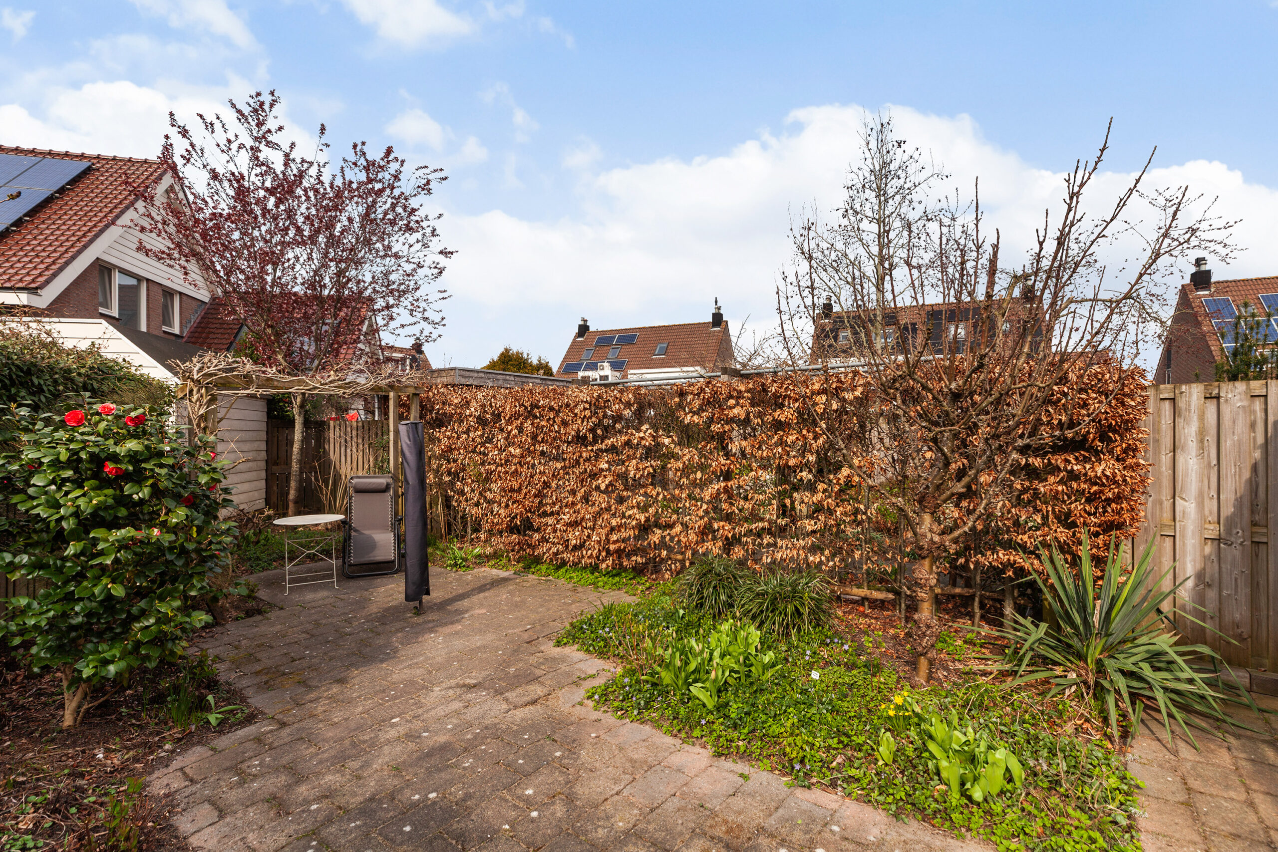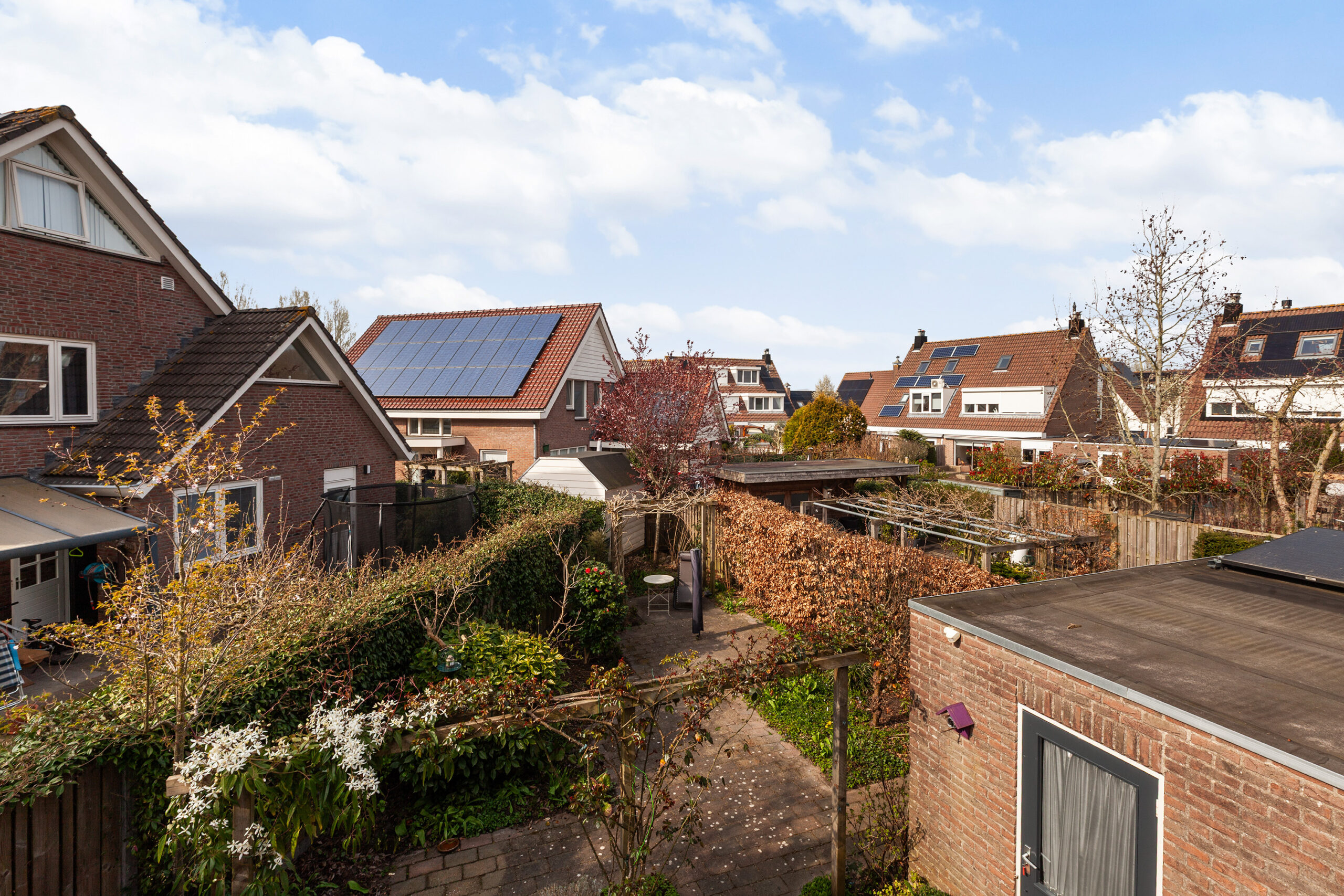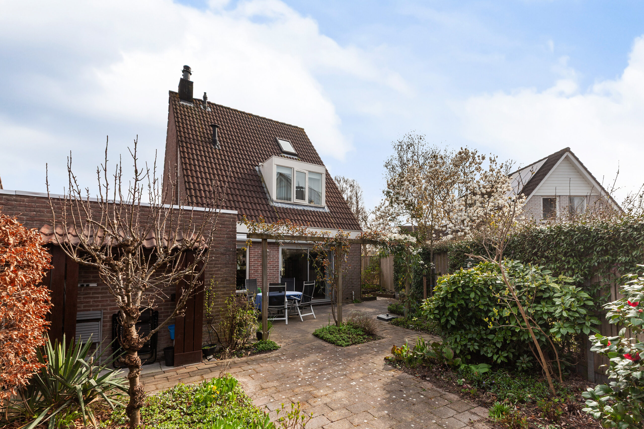 De woning staat op een perceel van 292 m² met een speels ingedeelde achtertuin. Deze heeft een mix van bestrating, diverse bloemen, planten en struiken. Rondom de pergola groeit de heerlijk geurende clematis en de uitbundig bloeiende rozen. Naast het terras heeft de berging van circa 1.86 x 1.81m. Aan de zijzijde loopt u de tuin door naar voorzijde en ook hier treft u diverse beplantingen en een overdekte fietsenstalling. Het is een tuin waar het absoluut goed vertoeven is!