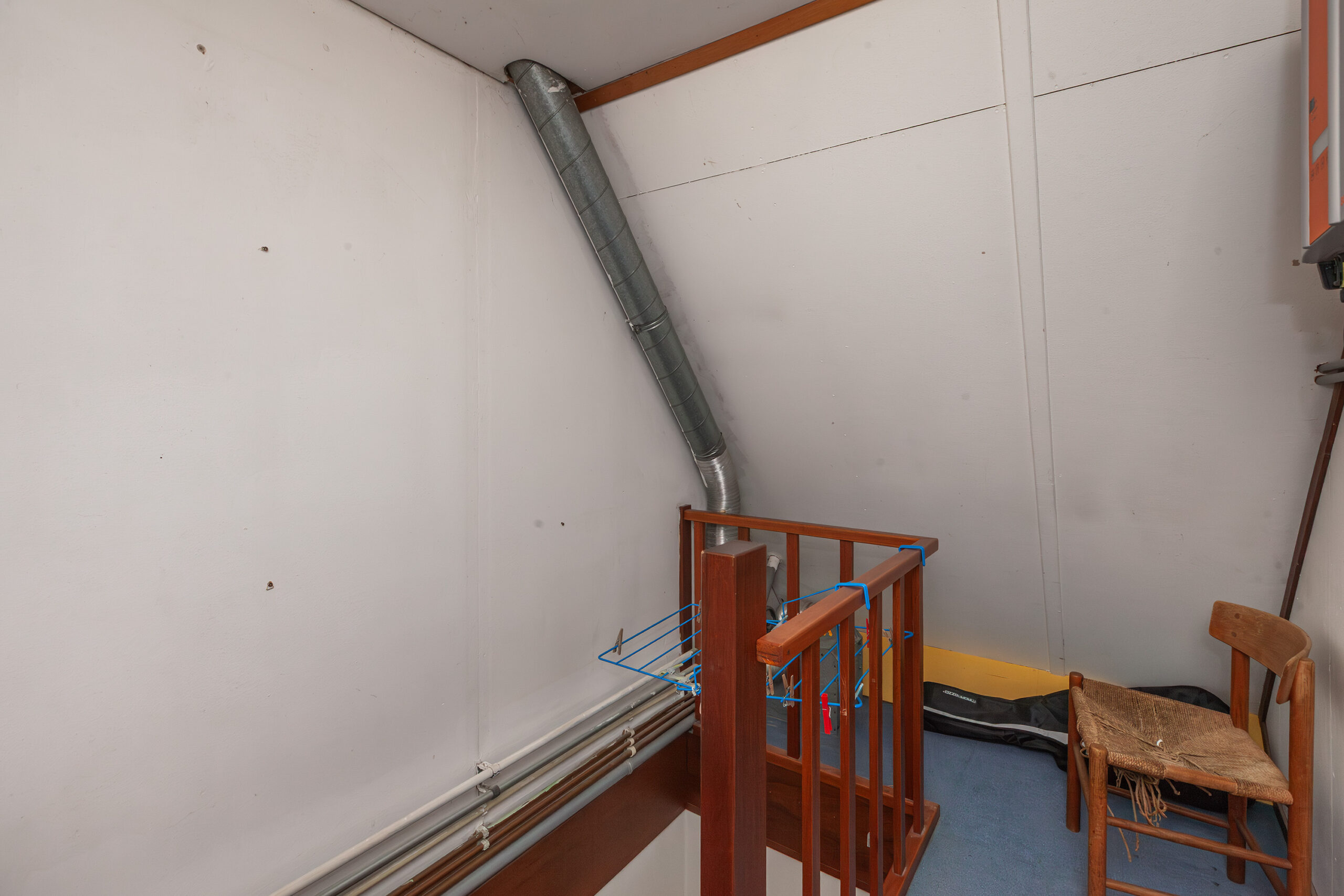Op de overloop is de opstelling van de C.V.-ketel en de omvormer van de zonnepanelen. Totaal zijn er acht zonnepanelen aanwezig. Verder is toegang tot slaapkamer IV en boven de overloop is een bergzolder.