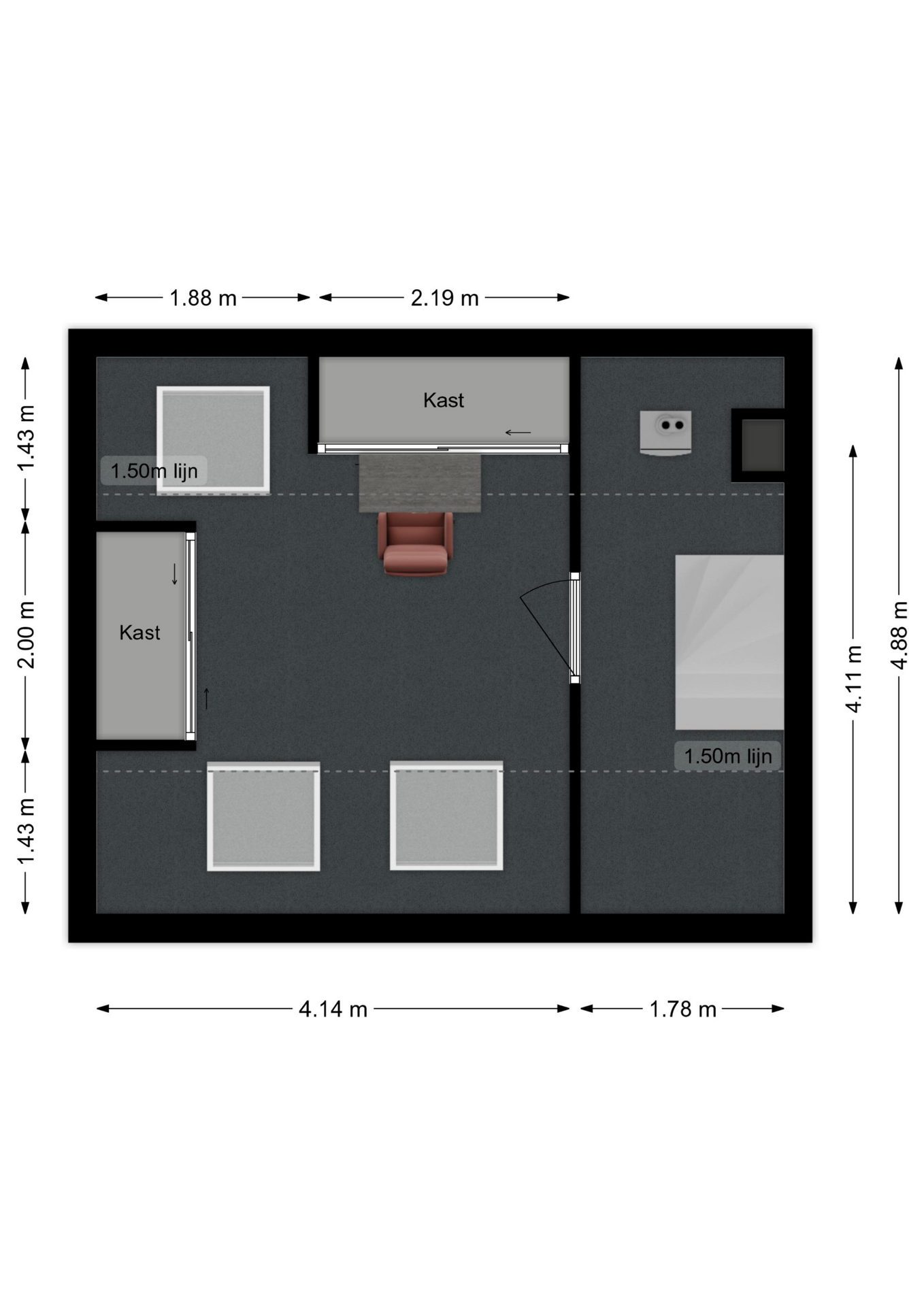 Maatvoering: Circa 4.88 x 1.78m