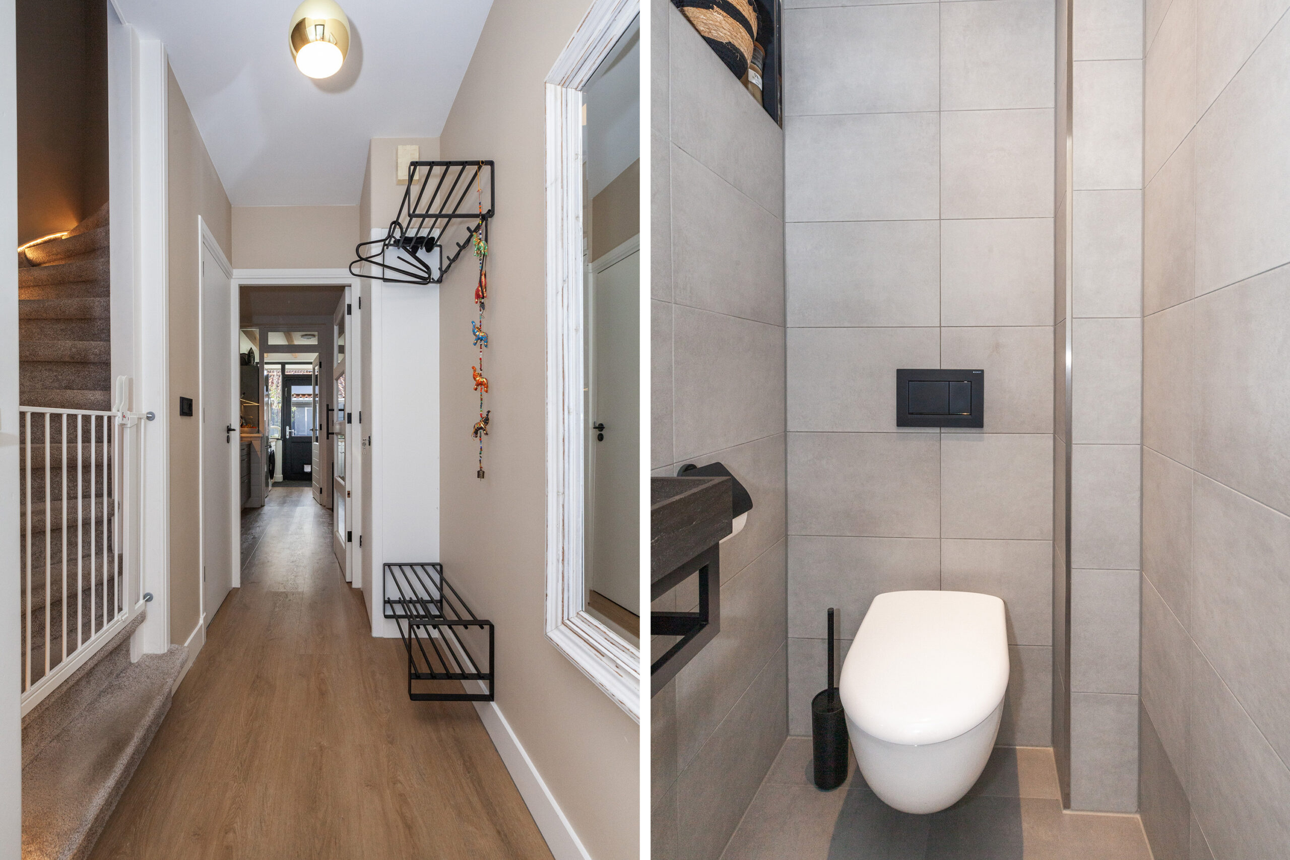 In deze ontvangstruimte heeft u de toiletruimte, trap naar de verdieping, trapkast (waar ook de waterontharder staat) en meterkast. De hal mondt uit in de keuken.
