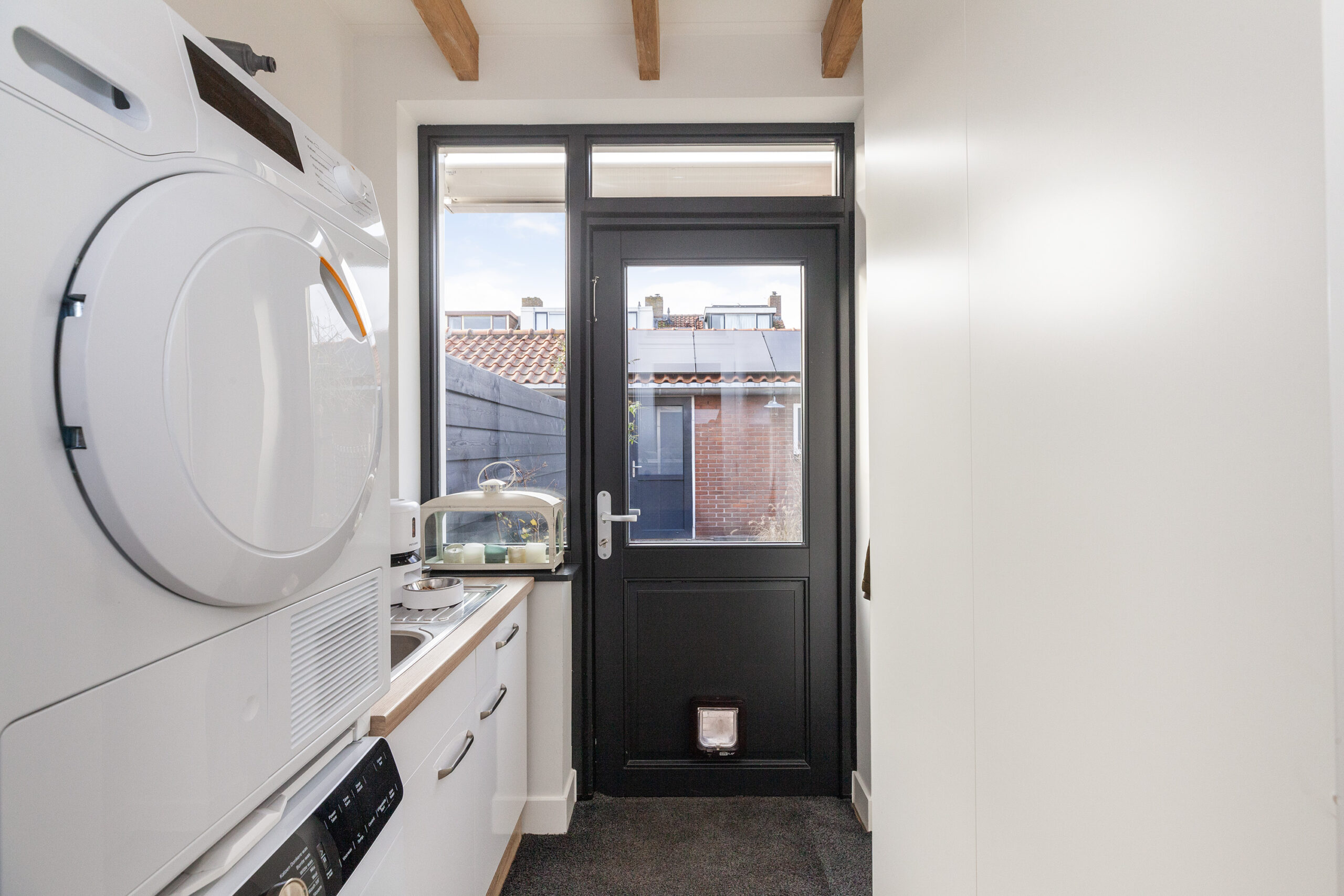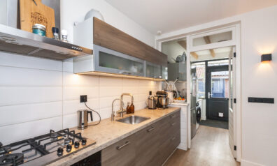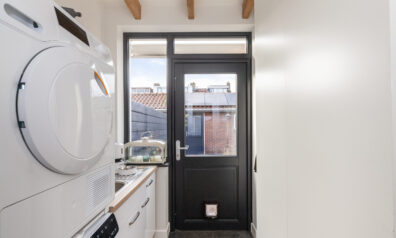 Een bijkeuken is altijd een praktische ruimte! U heeft namelijk hier de aansluitingen voor uw wasapparatuur en een extra keukenblok met spoelbak. Tevens is er een praktische hangkast. Tot slot kunt u naar de achtertuin.