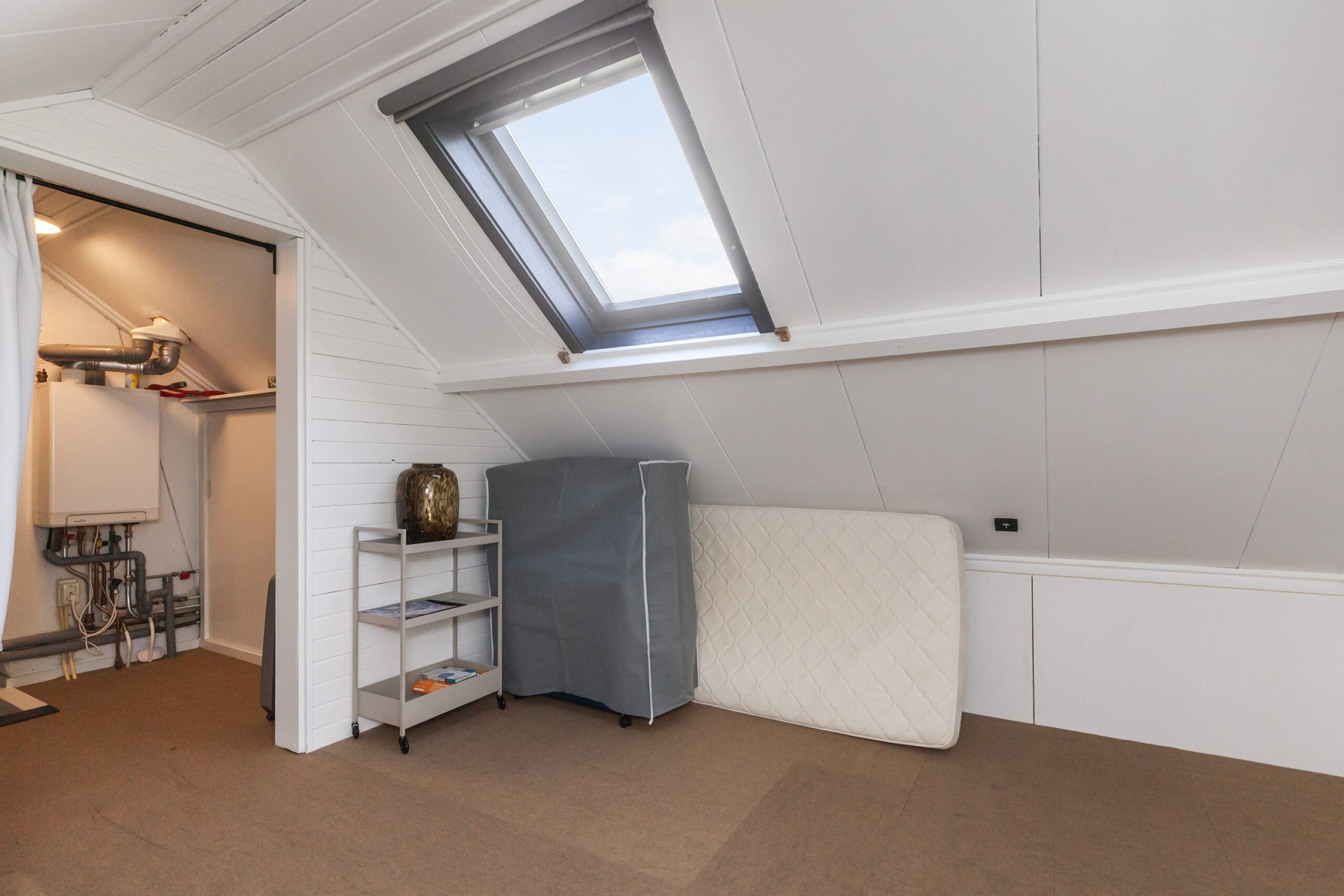 Aan beide zijden heeft u volop opbergruimte onder de schuine dakdelen. Tevens is hier ook de opstelling van de C.V.-ketel.