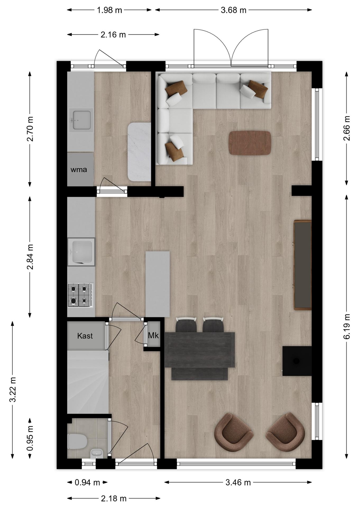 Maatvoering: Circa 3.46 x 3.19m