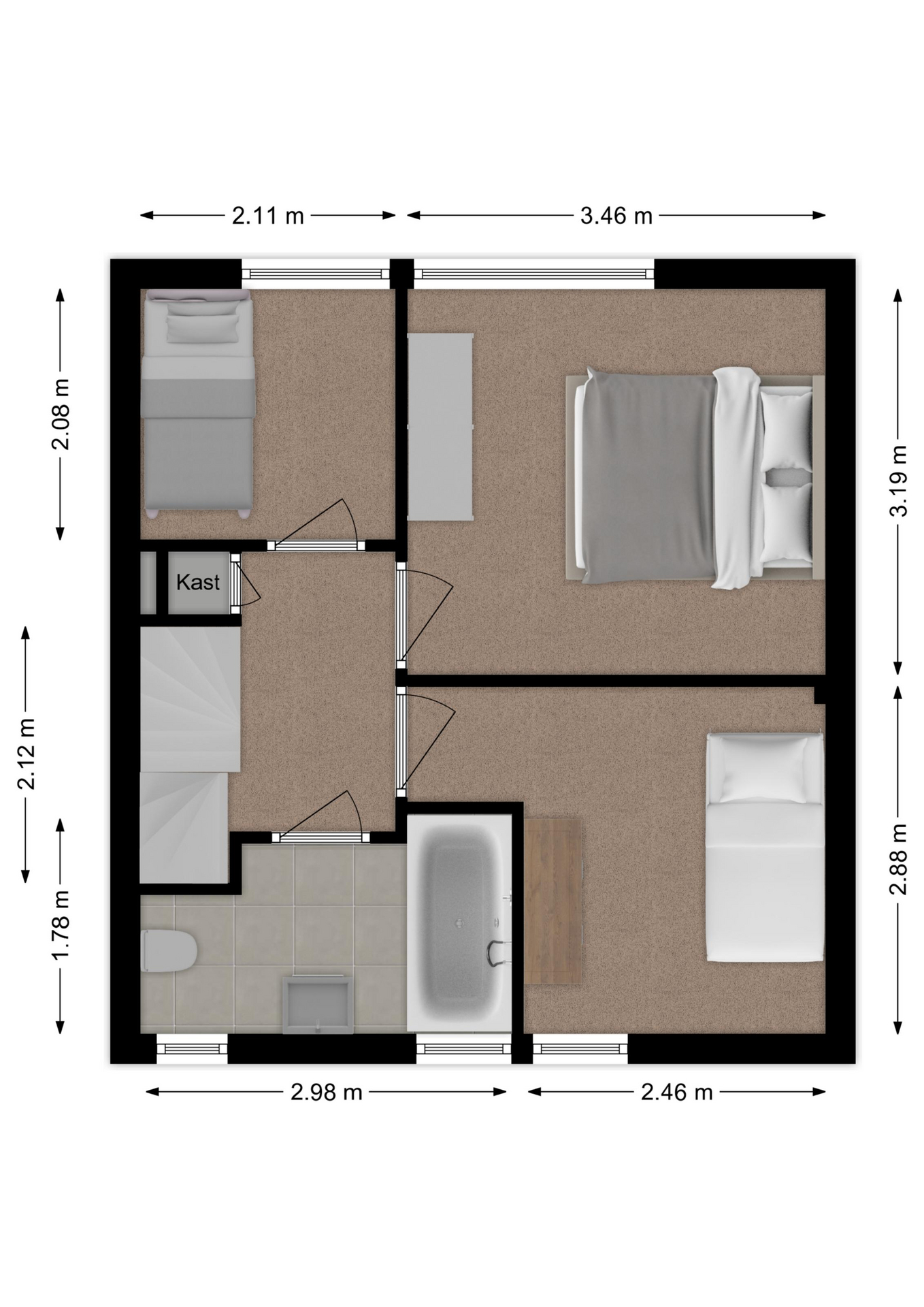 Maatvoering: Circa 2.88 x 3.46/2.46m