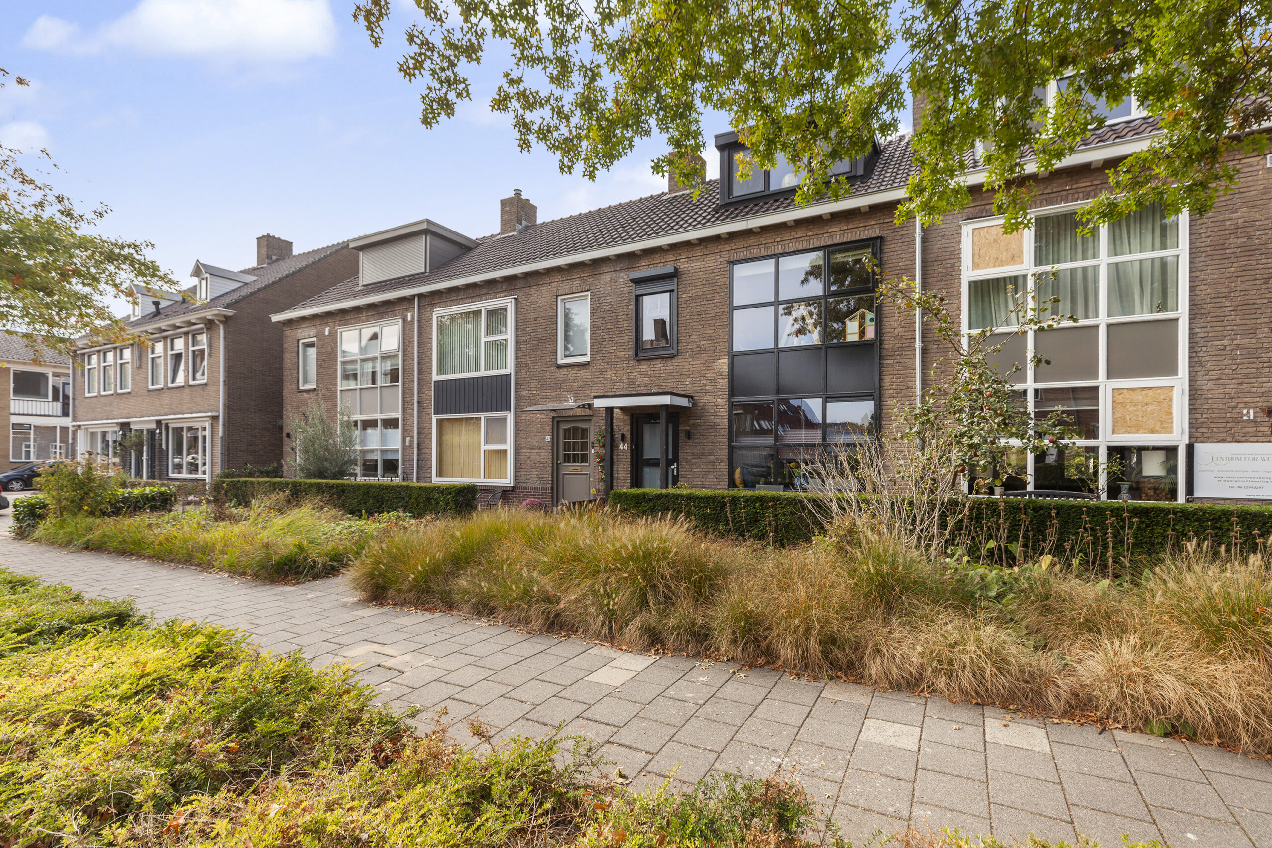 Bij aankomst aan de voorzijde ziet u direct dat de woning in goede onderhoudsstaat verkeert. Donkere kozijnen, geheel in stijl van anno nu en een gezellige voortuin waar u een leuk zitje kunt plaatsen.