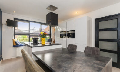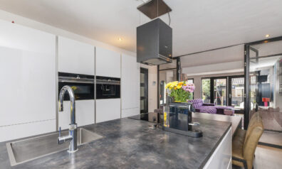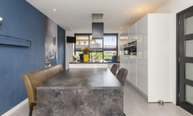 De ruime en lichte woonkeuken, uitgevoerd in hoogglans wit, vorm het hart van de woning. Deze nodigt u uit tot samen koken en een gezellig samenzijn. Het kookeiland is voorzien van een inductiekookplaat, afzuigkap, Quooker en vaatwasser. De kastenwand biedt volop bergruimte en is uitgerust met diverse inbouwapparatuur, waaronder een combi-oven, koel-/vriescombinatie en koffiezetapparaat.