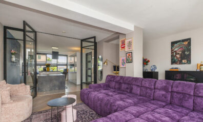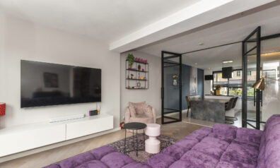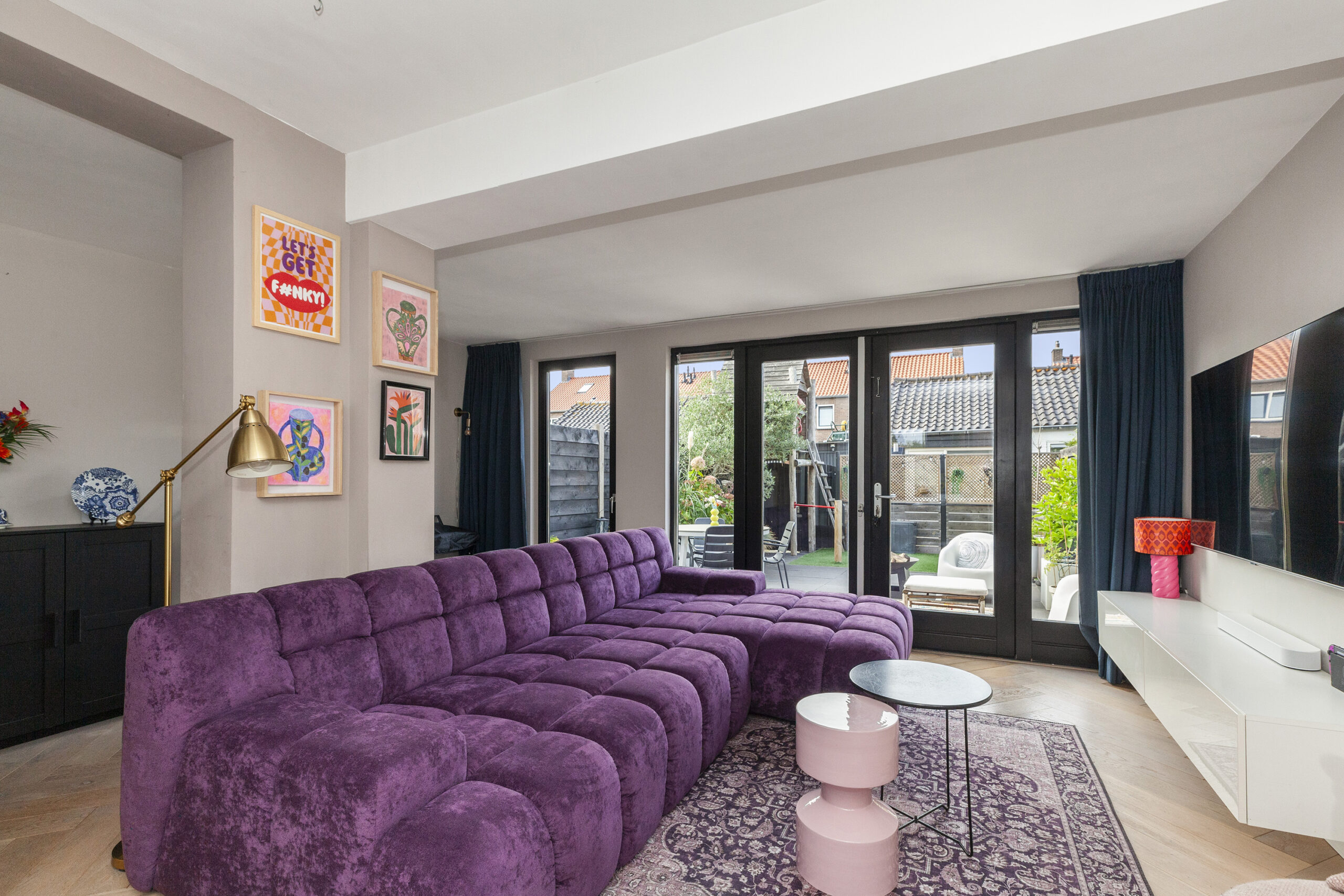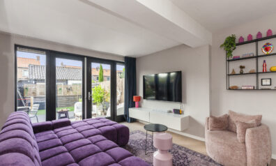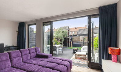 Ook in de woonkamer is het heerlijk genieten! Door de riante uitbouw is er een fijne, ruim opgezette kamer. De aanbouw is ook volledig geïsoleerd. Via de twee openslaande deuren kunt u direct naar de achtertuin en de naastgelegen raampartijen zorgen ervoor dat er prettig daglicht binnenshuis valt.