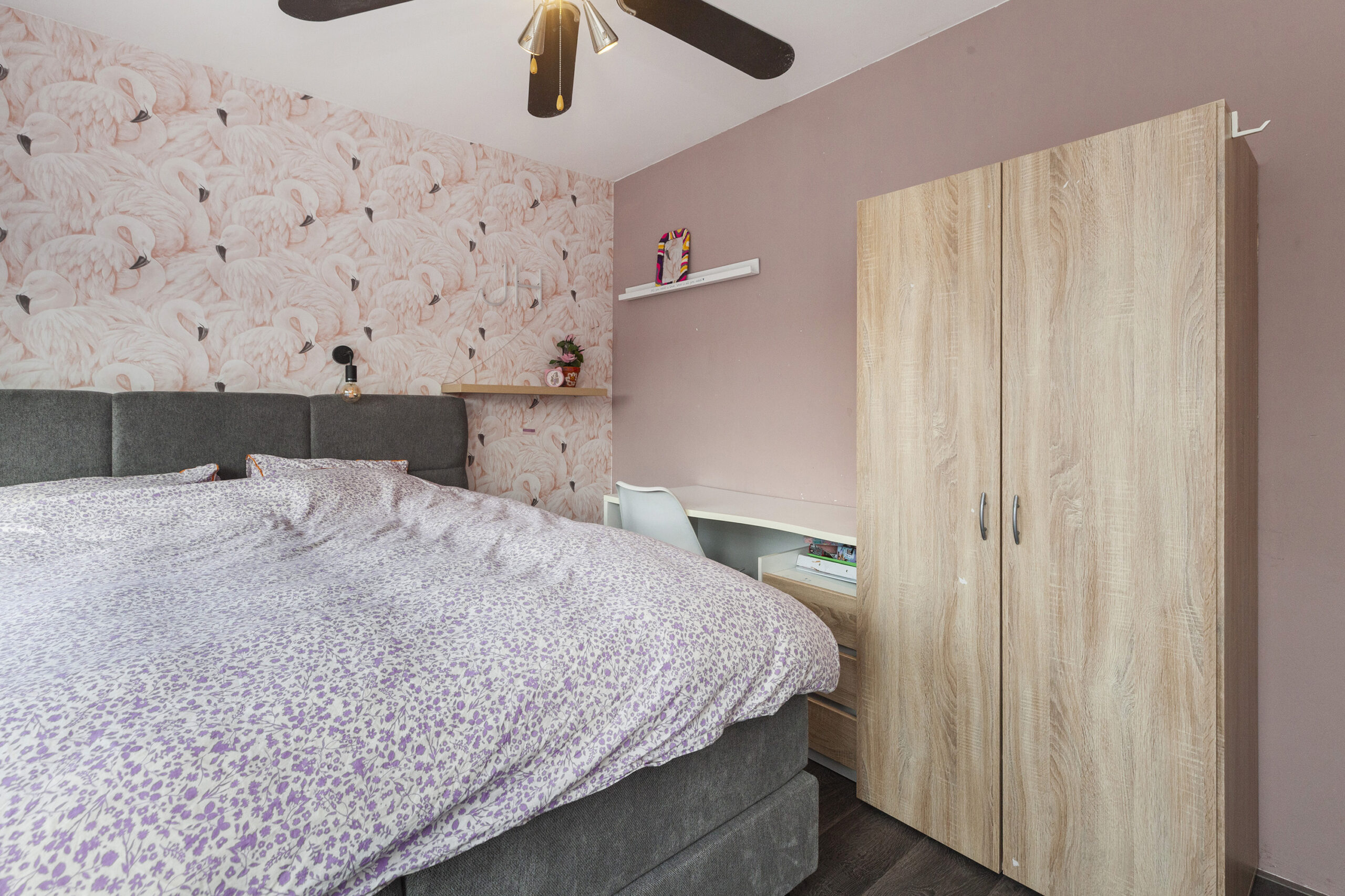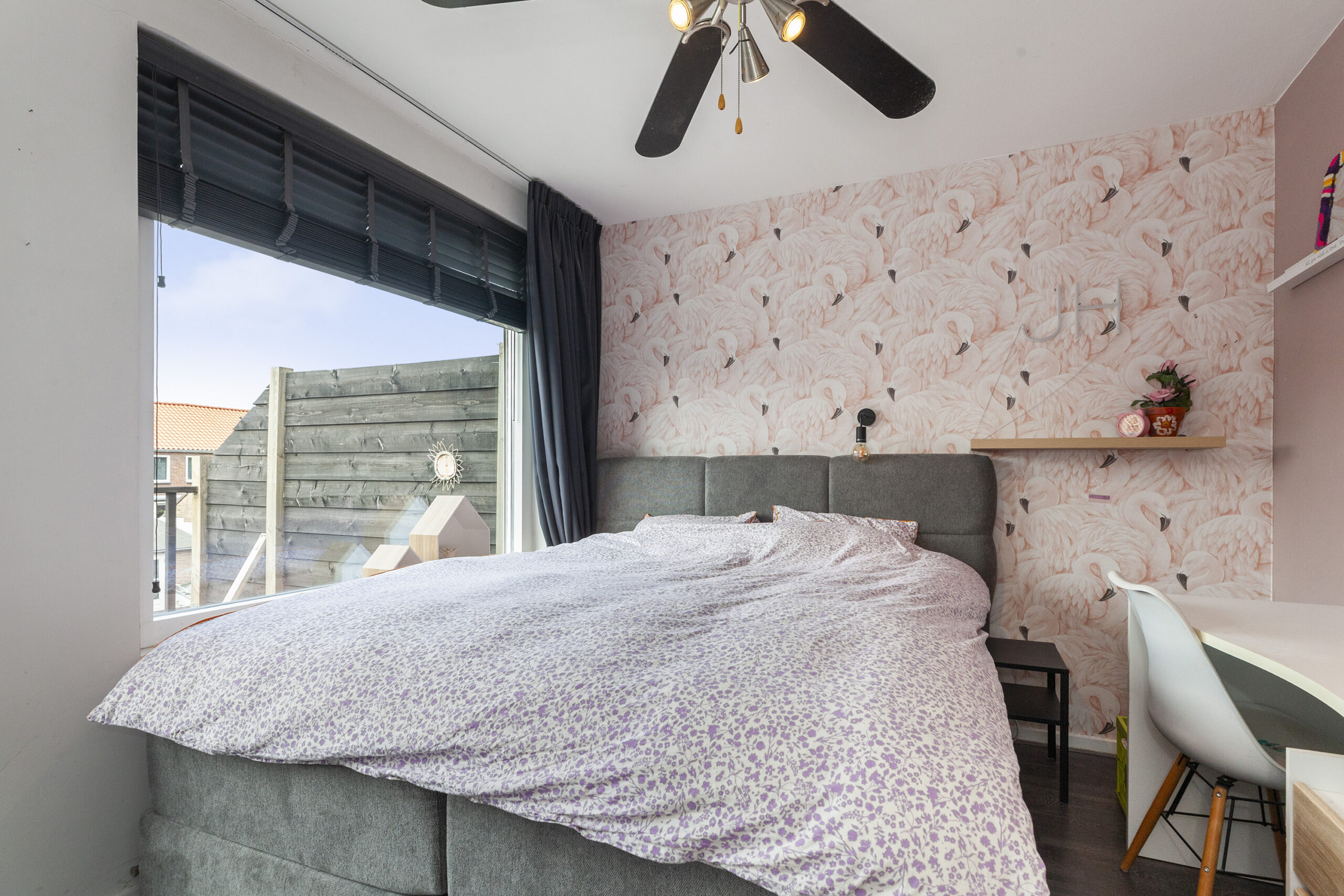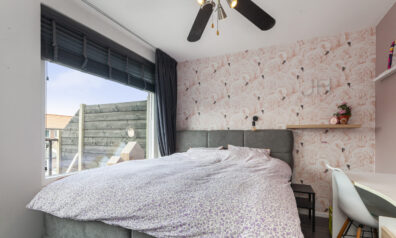 De tweede slaapkamer is gesitueerd aan de voorzijde en wat een grote kamer is dit! Deze is sfeervol afgewerkt en voorzien van grote ramen.