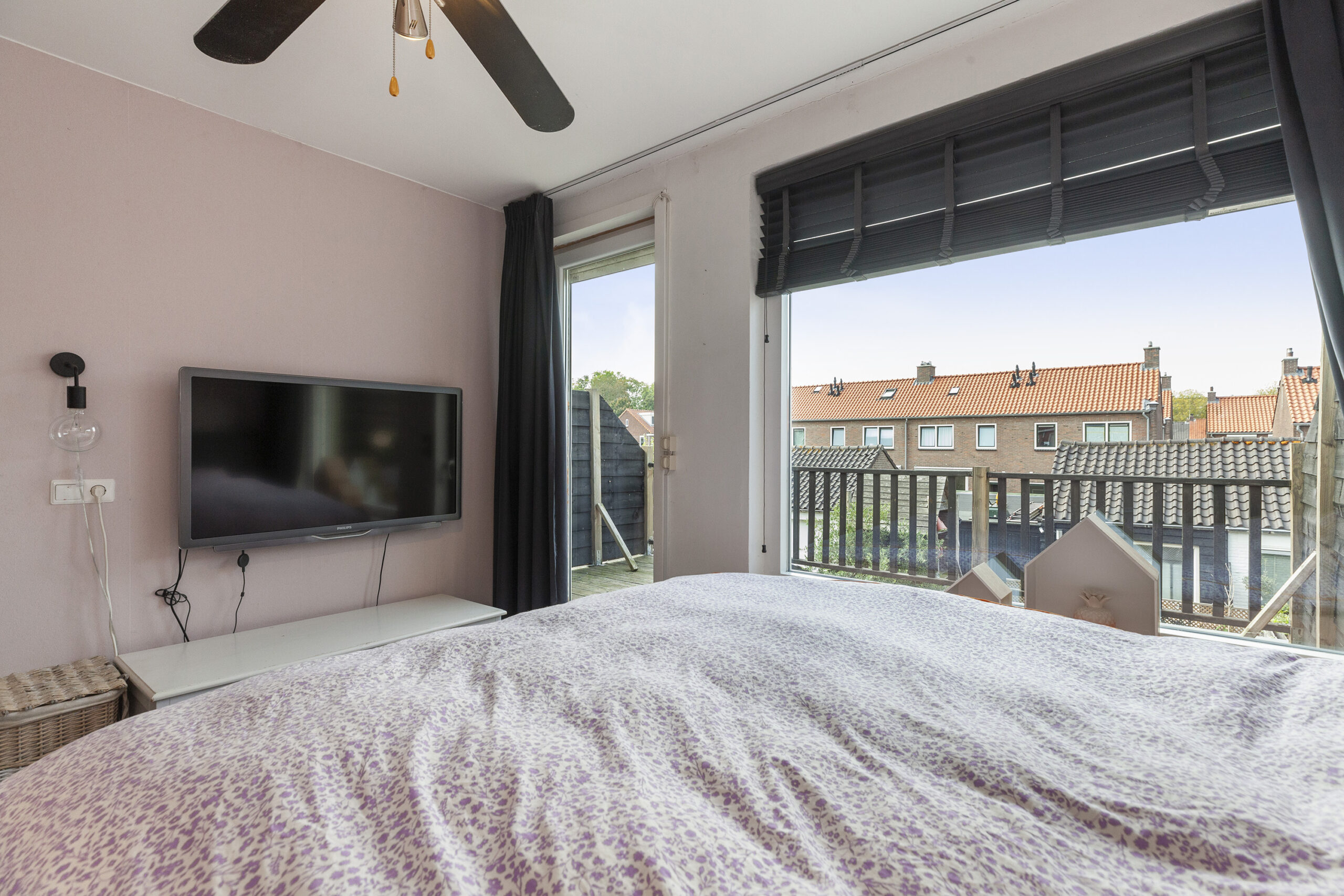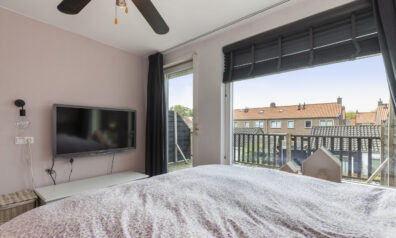 Deze slaapkamer treft u aan de achterzijde en vanuit deze kamer is het dakterras toegankelijk (circa 13 m²). De ramen zijn overigens voorzien van elektrische rolluiken.