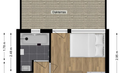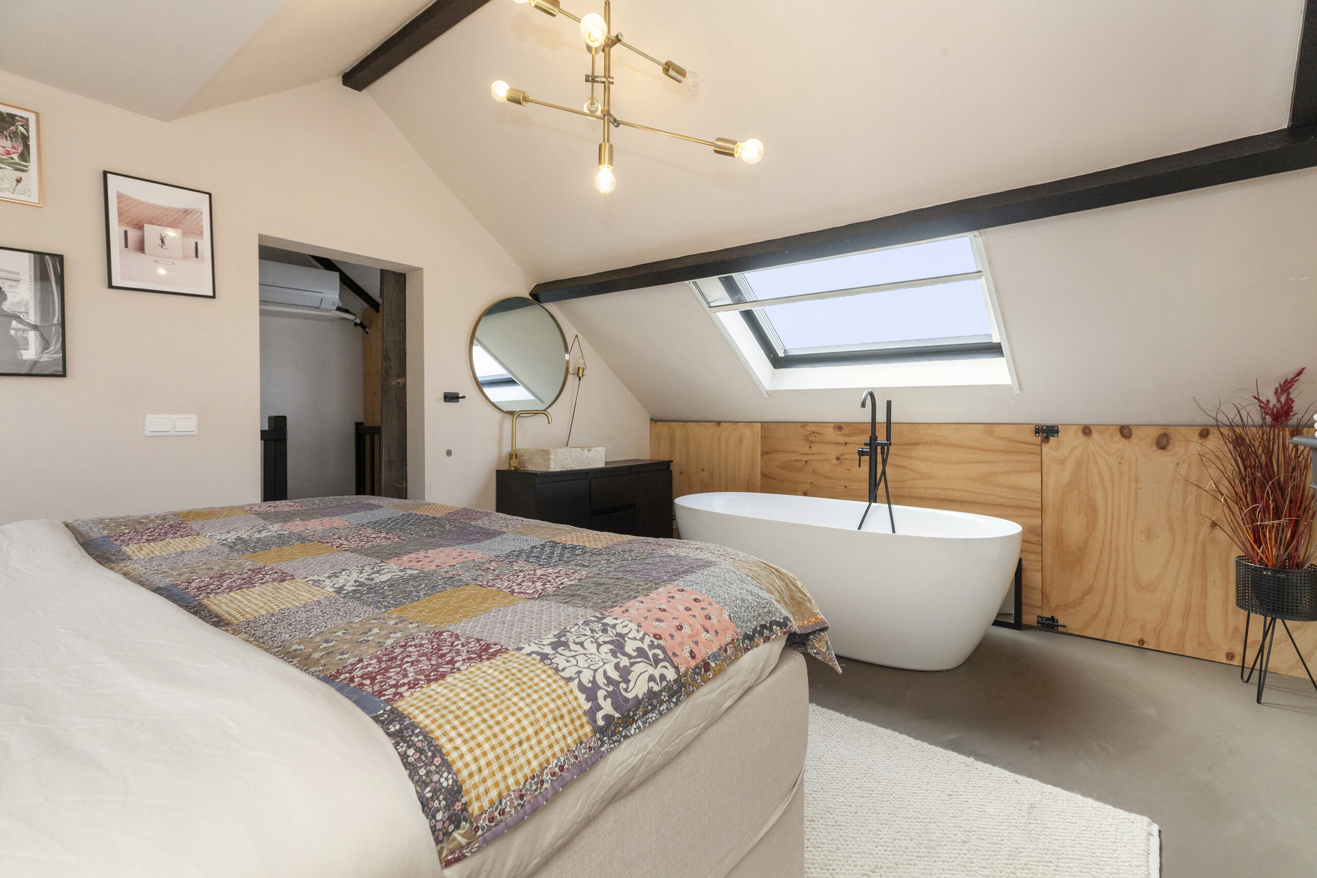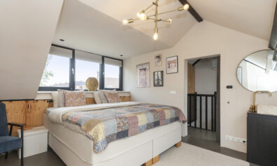 Wat een fantastische kamer! Hier gaat uw wens echt in vervulling. Naast het feit dat u hier kunt slapen, kunt u ook uitgebreid baden in het vrijstaande bad. Daarnaast is er een wastafelmeubel. Door de dakkapel (voorzien van kunststof kozijnen) is er aanzienlijk meer leefruimte en onder de schuine dakdelen is er opbergruimte.