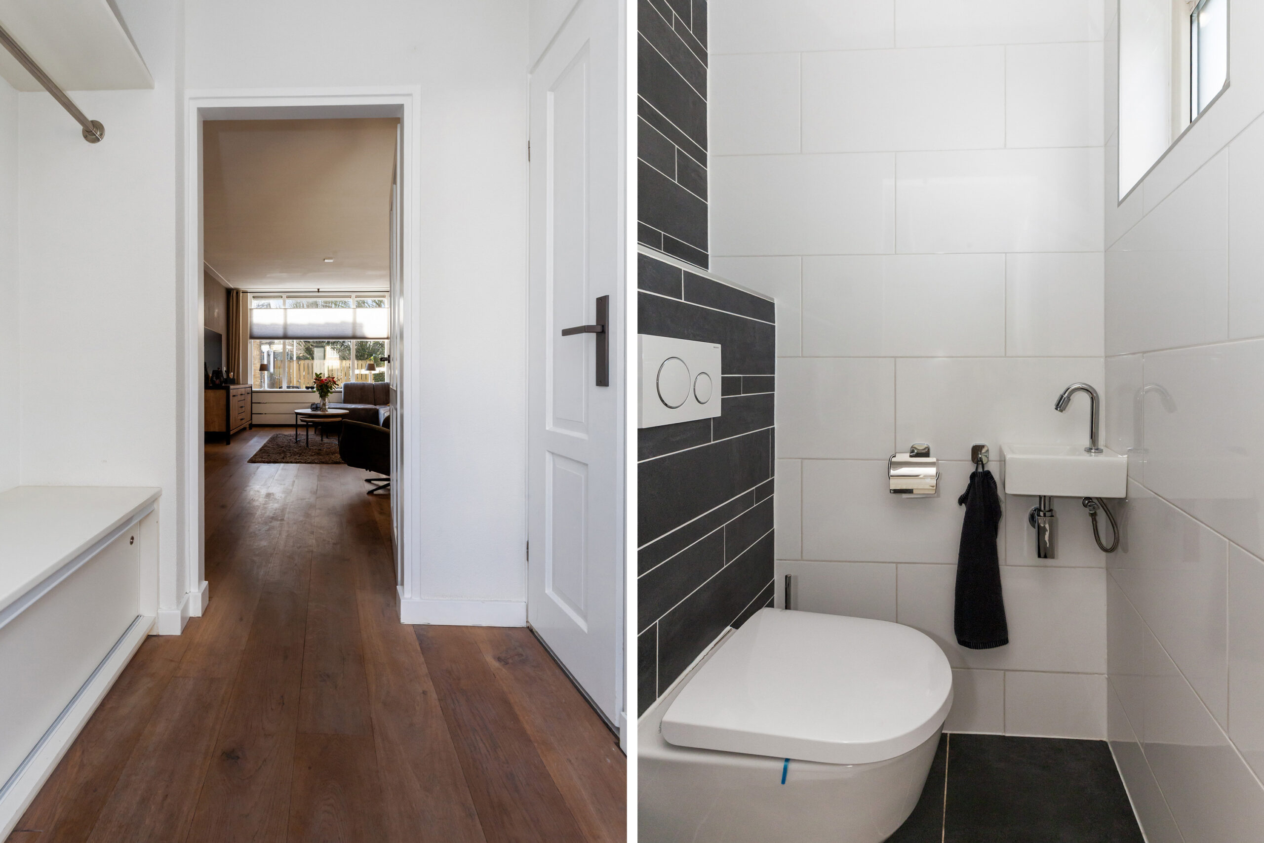 In de ontvangstruimte heeft u de toiletruimte en de meterkast. De deur naar de woonkamer nodigt u uit om verder te lopen.