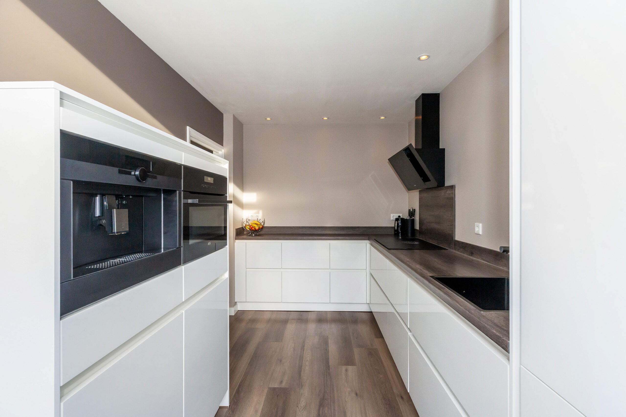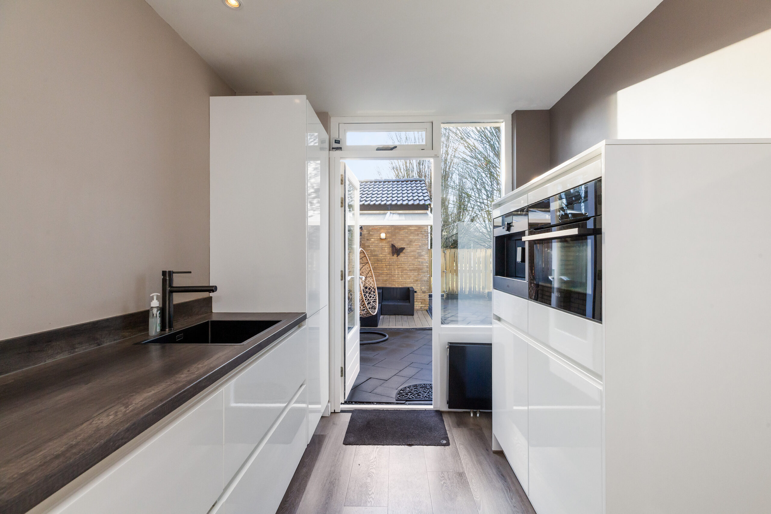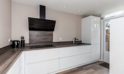 De keuken is in 2018 geplaatst en opgesteld in een hoekopstelling met alle werkruimte aan het aanrechtblad voor het bereiden van de lekkerste maaltijden en baksels. Aan inbouwapparatuur heeft u de beschikking over een inductiekookplaat, afzuigkap, koel-/vriescombinatie, vaatwasser, combimagnetron en koffiezetapparaat. Daarbij heeft u ook een close-in boiler waardoor u snel warm water heeft, ideaal! Via de achterdeur komt u in de tuin.
