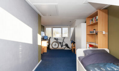 Aan de achterzijde treft u deze laatste kamer, welke ideaal te gebruiken is als extra slaap-, hobby- of werkkamer bijvoorbeeld.