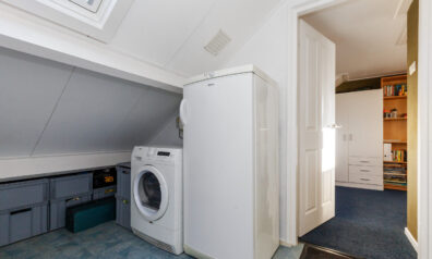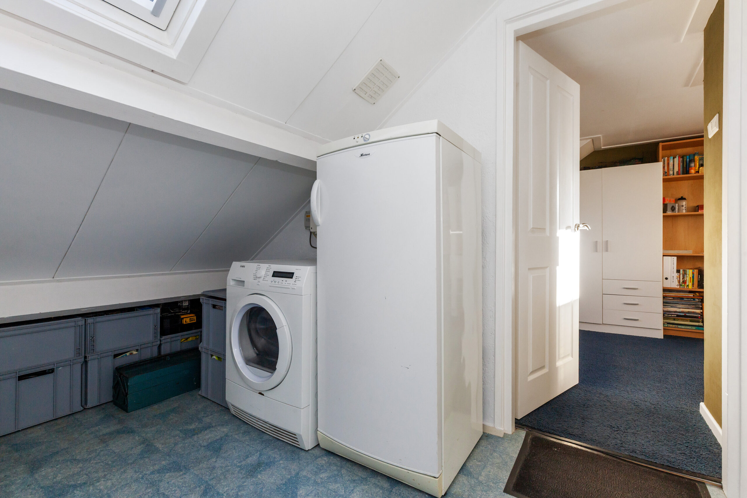 Vanaf de overloop komt u in de twee slaapkamers. Daarnaast heeft u de mogelijkheid om de droger hier te plaatsen.