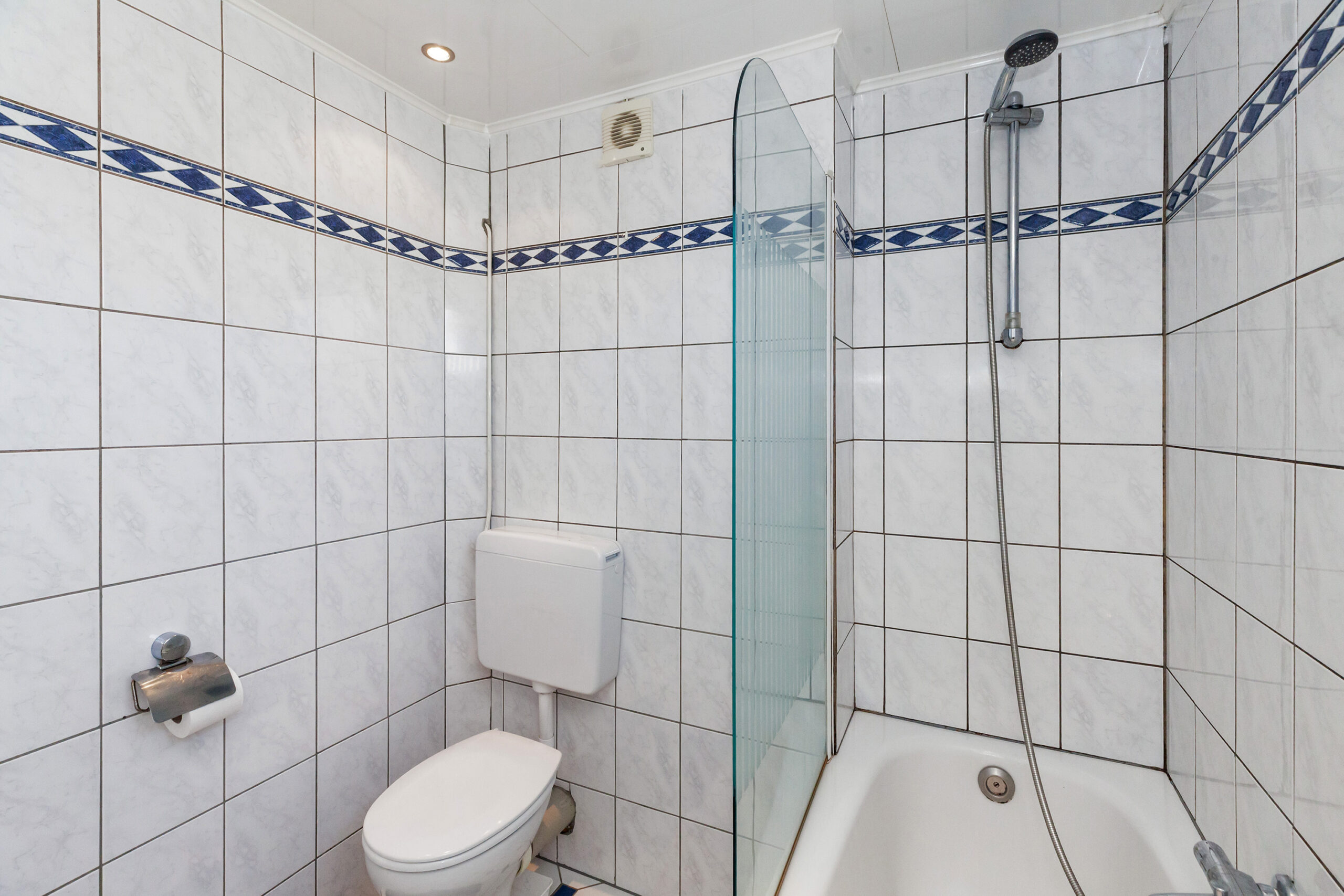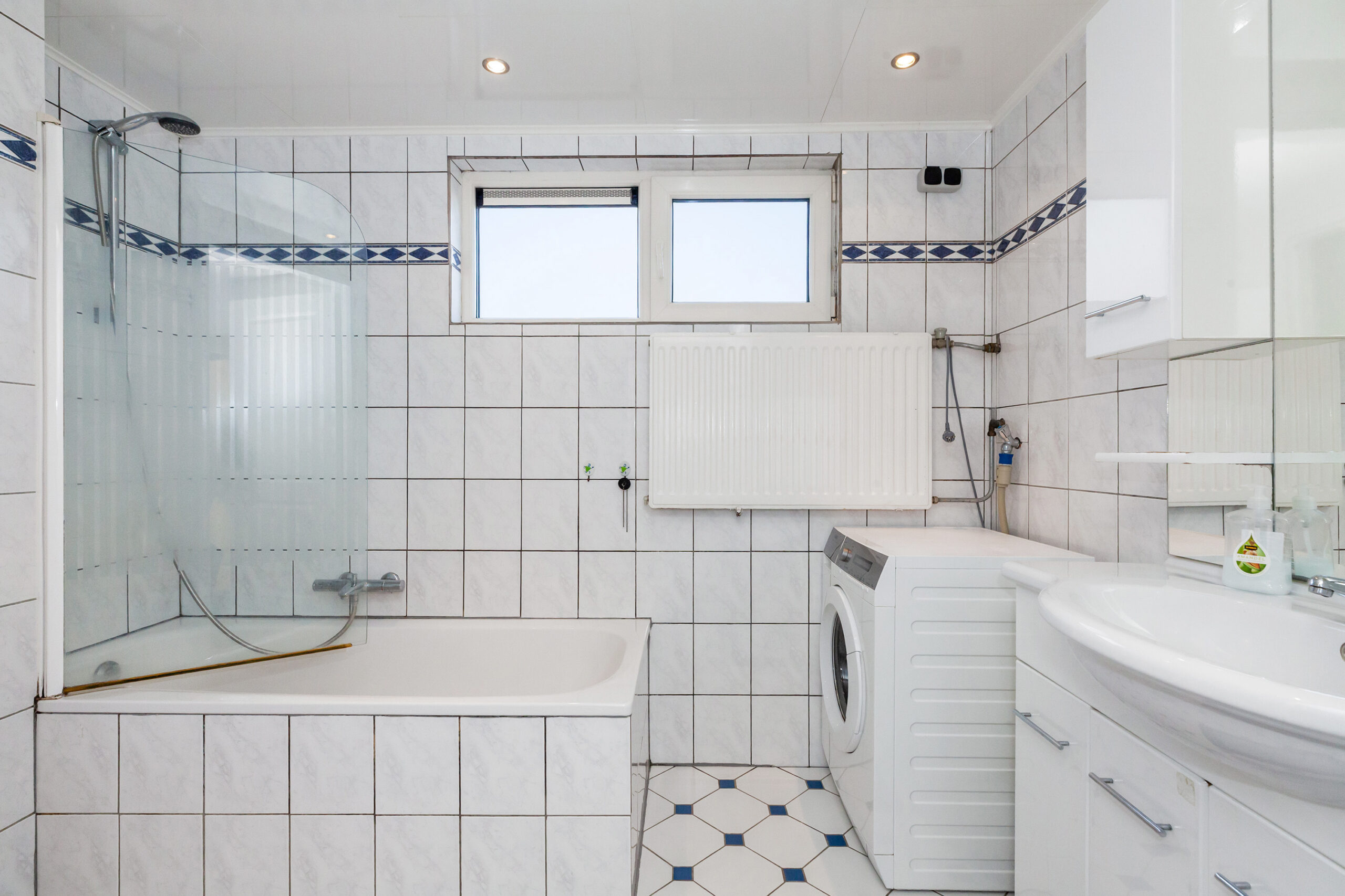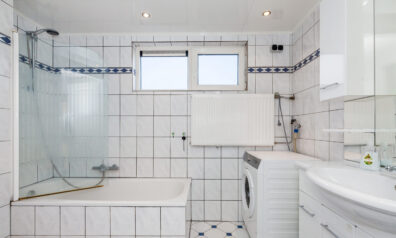 De badkamer is al vele jaren geleden geplaatst, maar altijd netjes onderhouden geweest. Deze is voorzien van nagenoeg alle gemakken. U heeft namelijk een ligbad met douchegelegenheid, wastafelmeubel, toilet en de aansluiting voor de wasmachine.