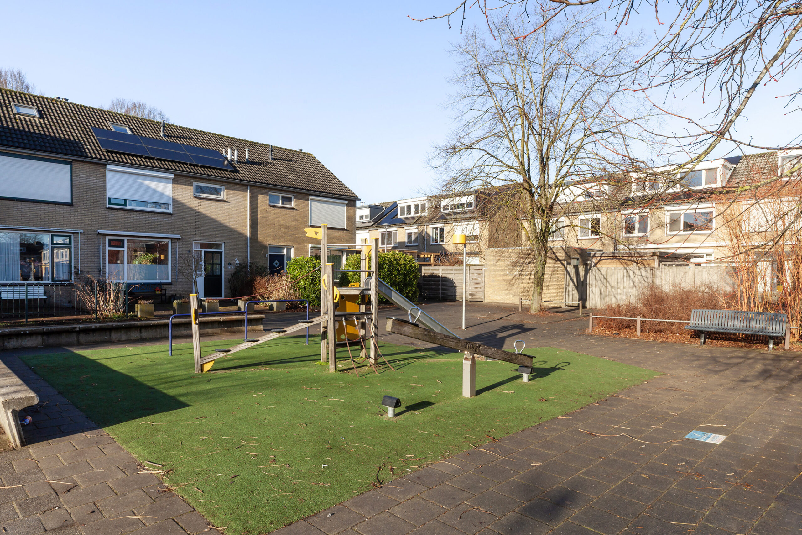Zoals eerder gezegd staat de woning in een kindvriendelijke woonomgeving. Deze ruim opgezette wijk met veel groen en speelplaatsen biedt dan ook veel voor gezinnen. Langs de Tiendweg is het heerlijk om even een ommetje te wandelen.