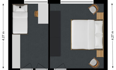 Allereerst de ouderslaapkamer. Deze is aan de achterzijde gesitueerd en de grootste kamer op deze verdieping.