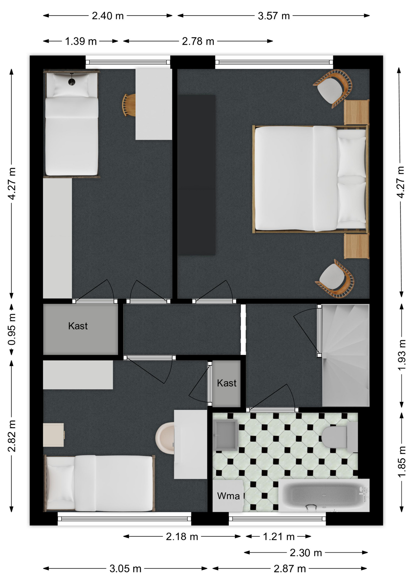 Maatvoering: Circa 4.27 x 2.40m