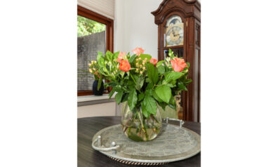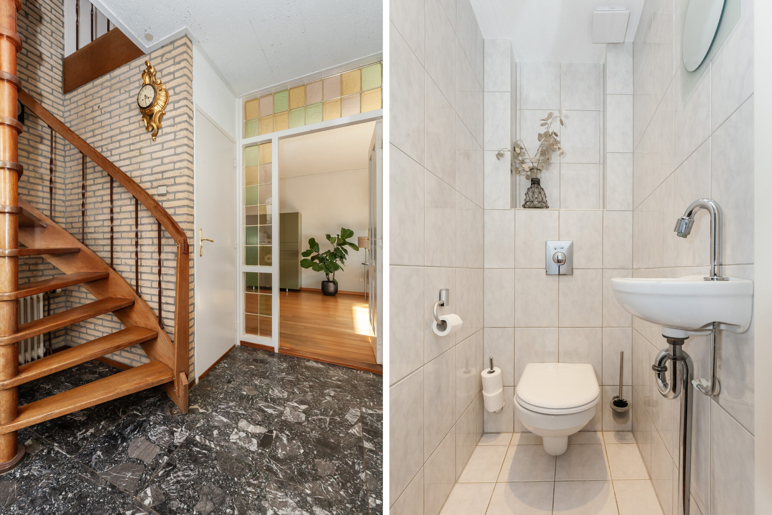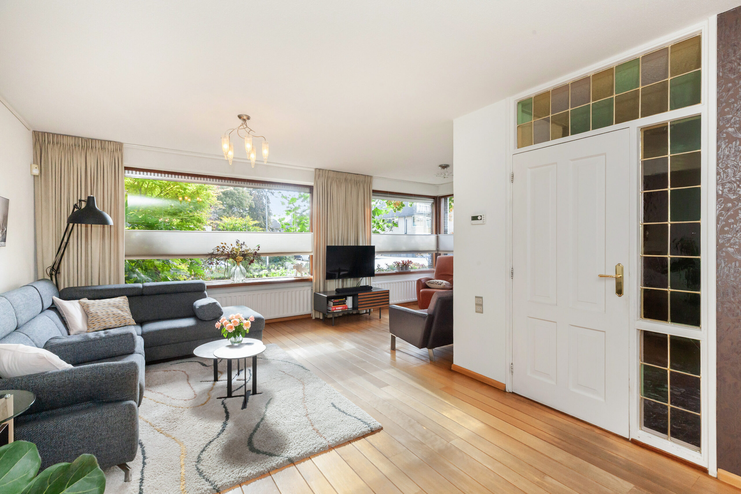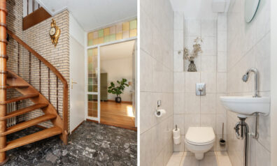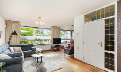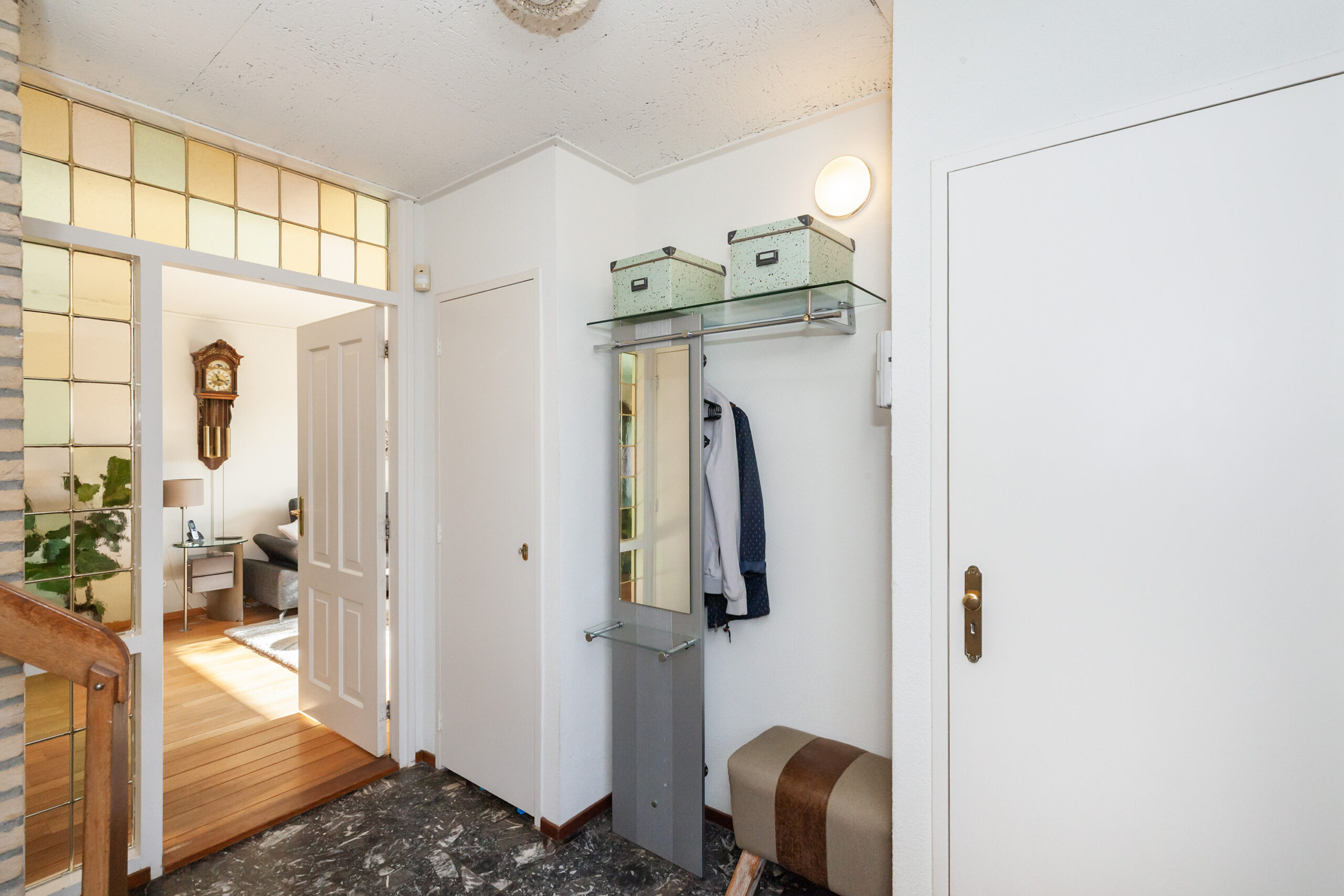 Met een warm onthaal wordt u verwelkomd in deze ontvangstruimte. In de hal heeft u de meterkast, garderobekast, toiletruimte en trap naar de verdieping. De deur naar de woonkamer is omgeven door schitterende glas-in-loodramen.