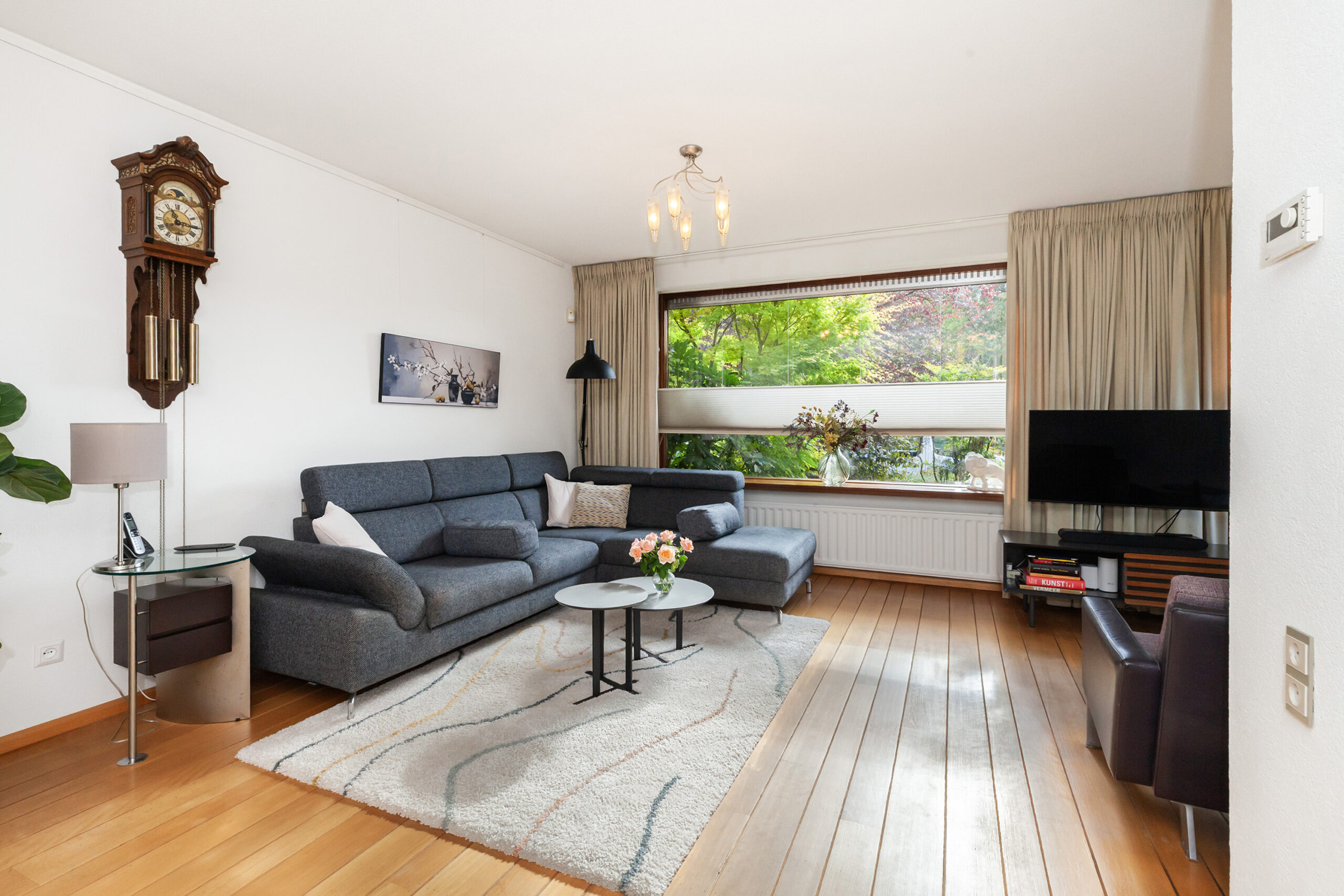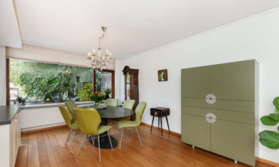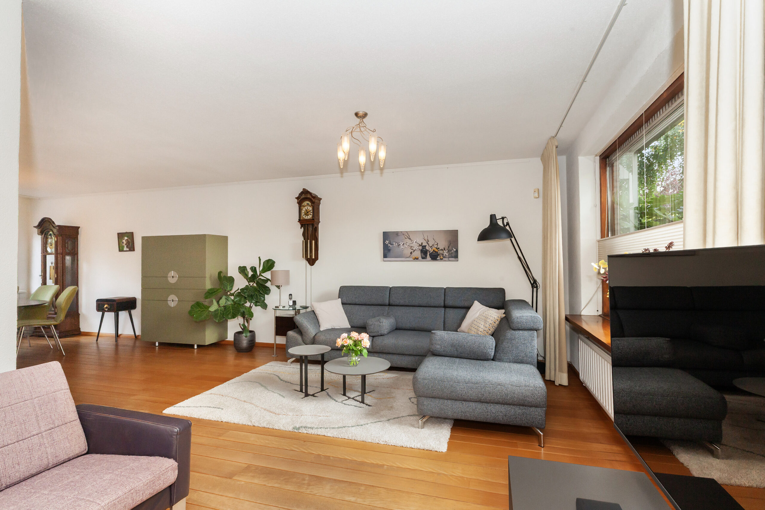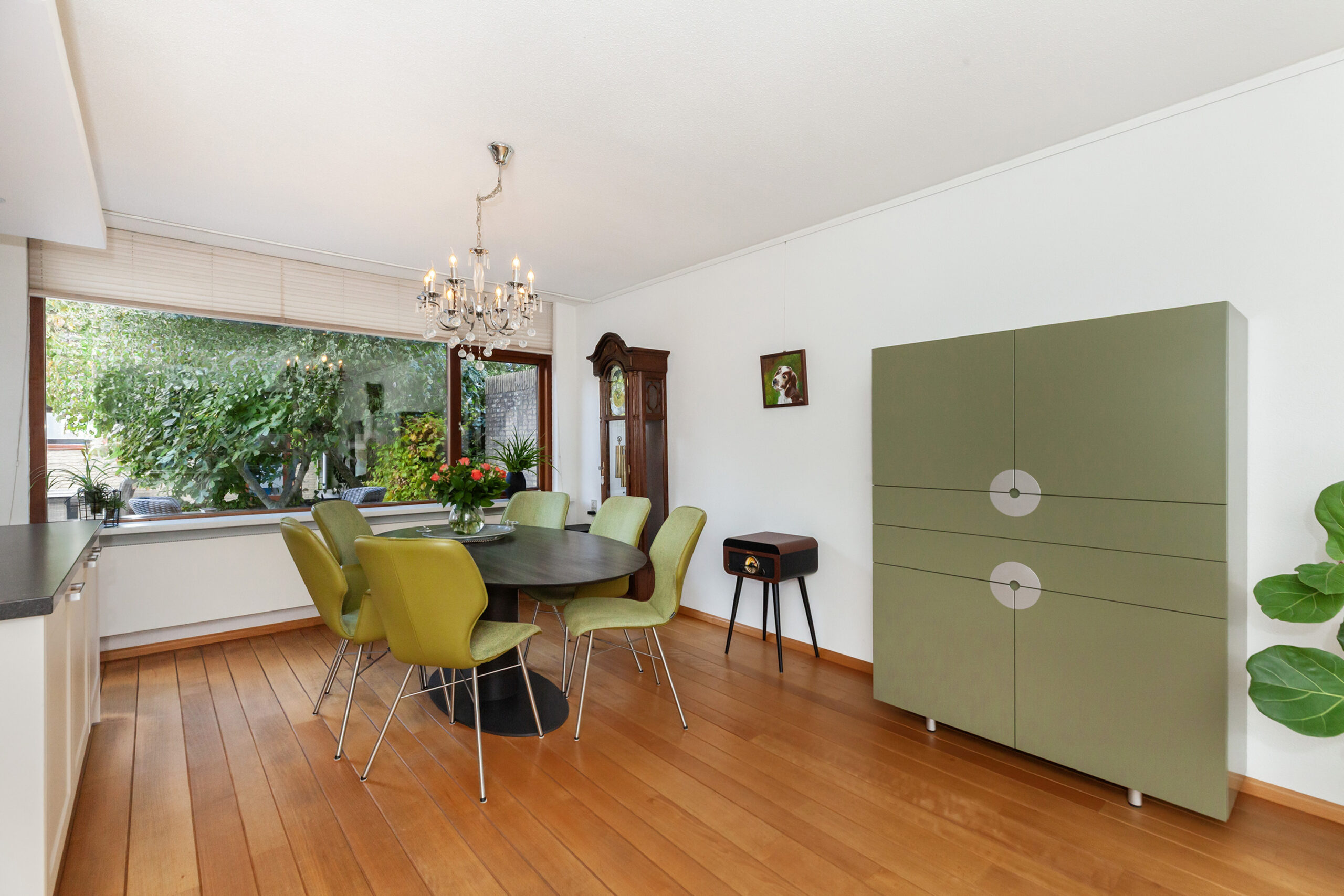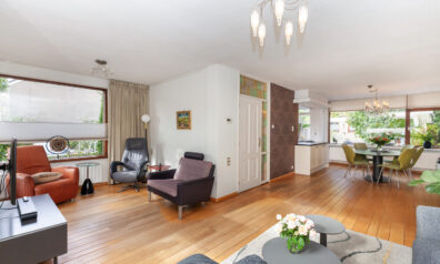 Wat een heerlijke woonkamer! Grote ramen in combinatie met lichte afwerkingen en de houten parketvloer maken het tot een rustige woonkamer. Doordat de woning zo fijn breed is (ruim 6m) kunt u meerdere zithoeken creëren. Aan de achterzijde vloeit de kamer over in de eethoek met naastgelegen keuken.
