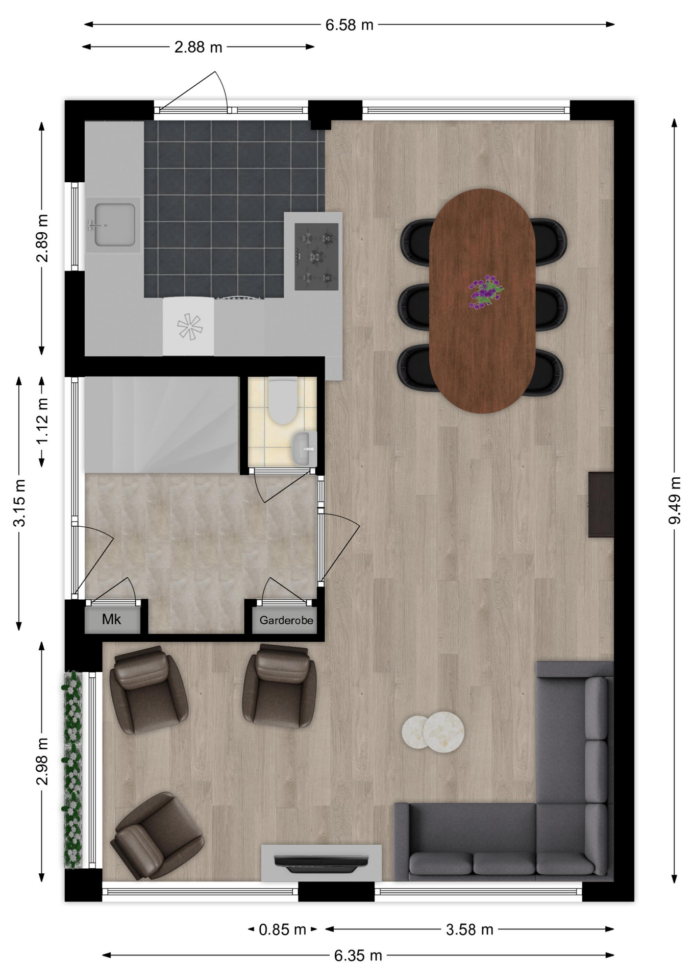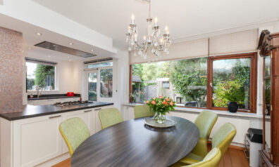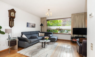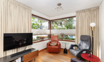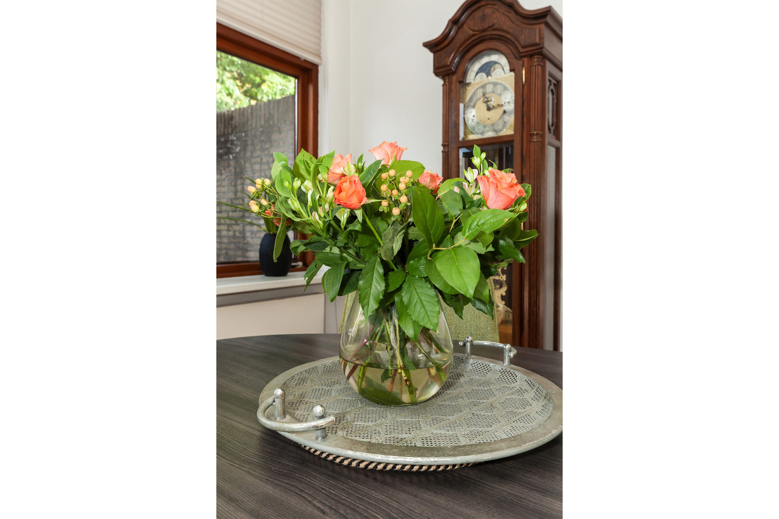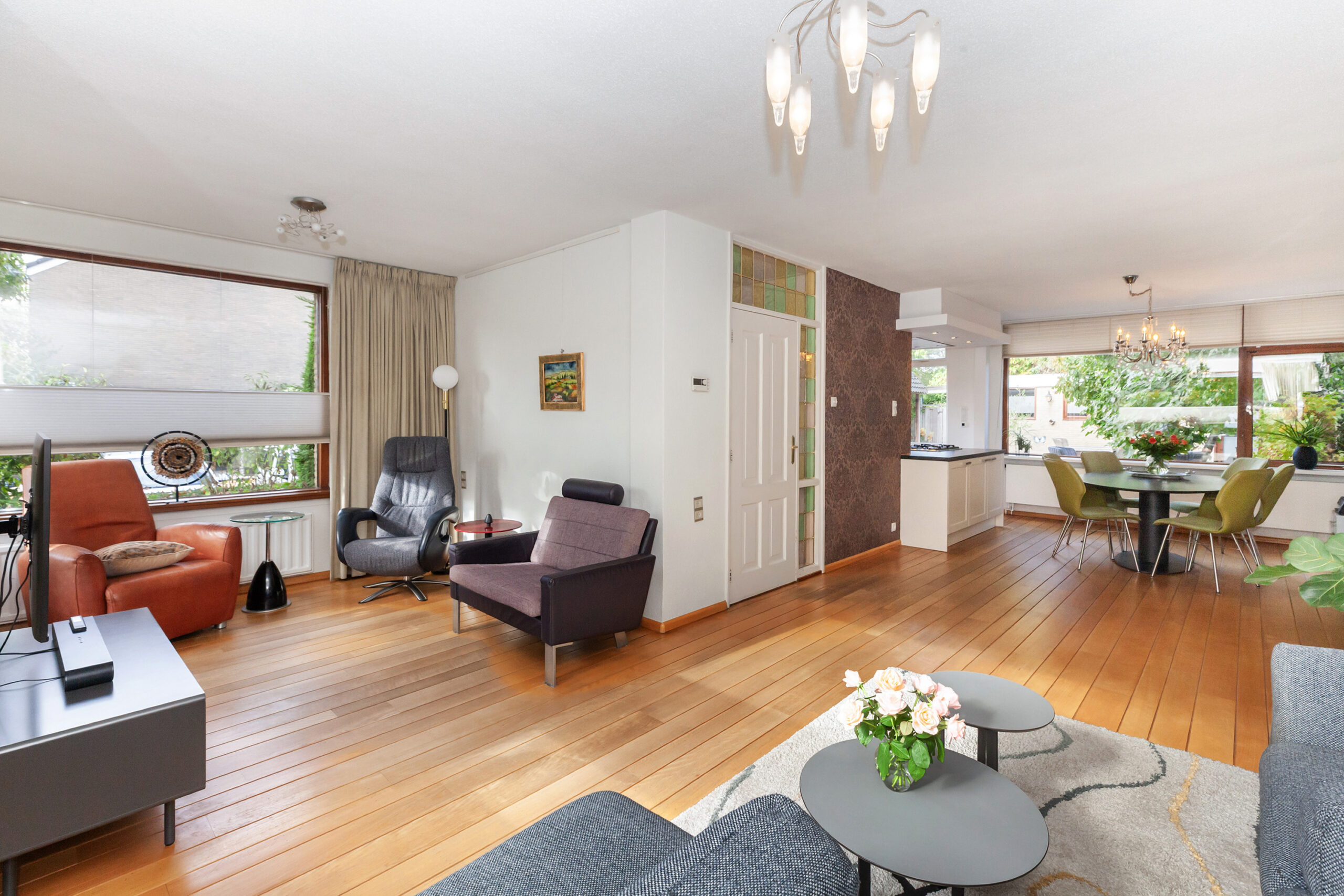 Wat een heerlijke woonkamer! Grote ramen in combinatie met lichte afwerkingen en de houten parketvloer maken het tot een rustige woonkamer. Doordat de woning zo fijn breed is (ruim 6m) kunt u meerdere zithoeken creëren. Aan de achterzijde vloeit de kamer over in de eethoek met naastgelegen keuken.