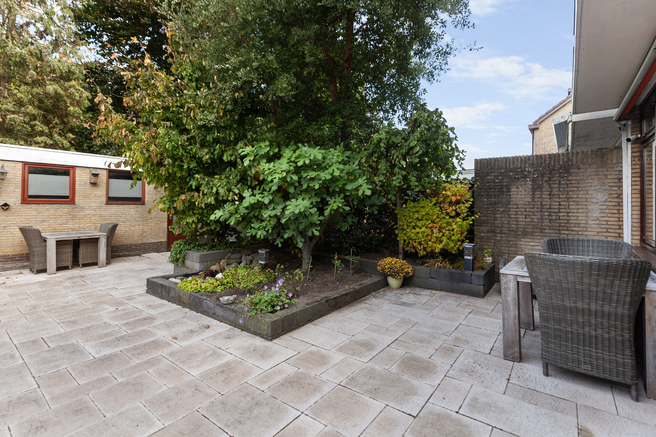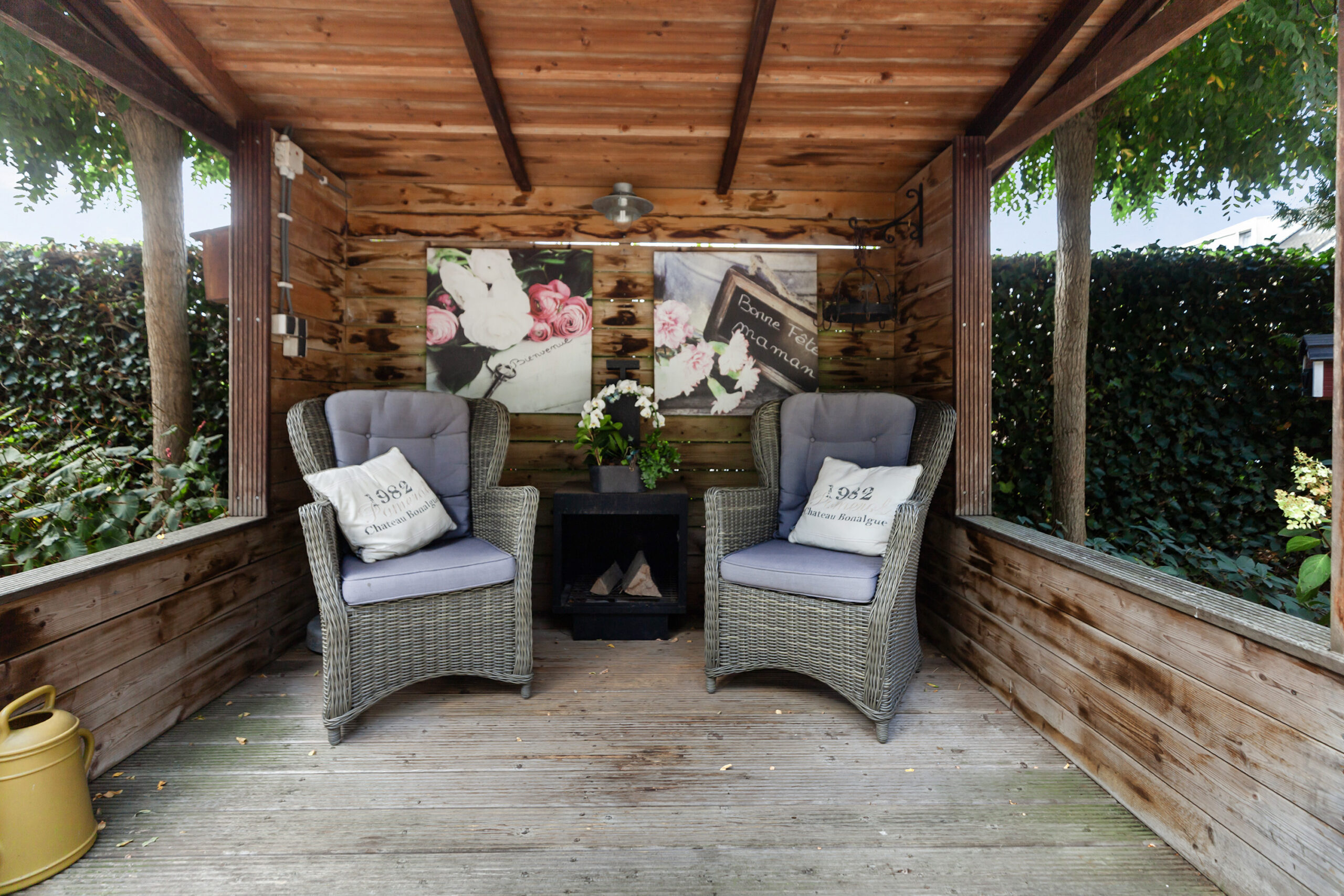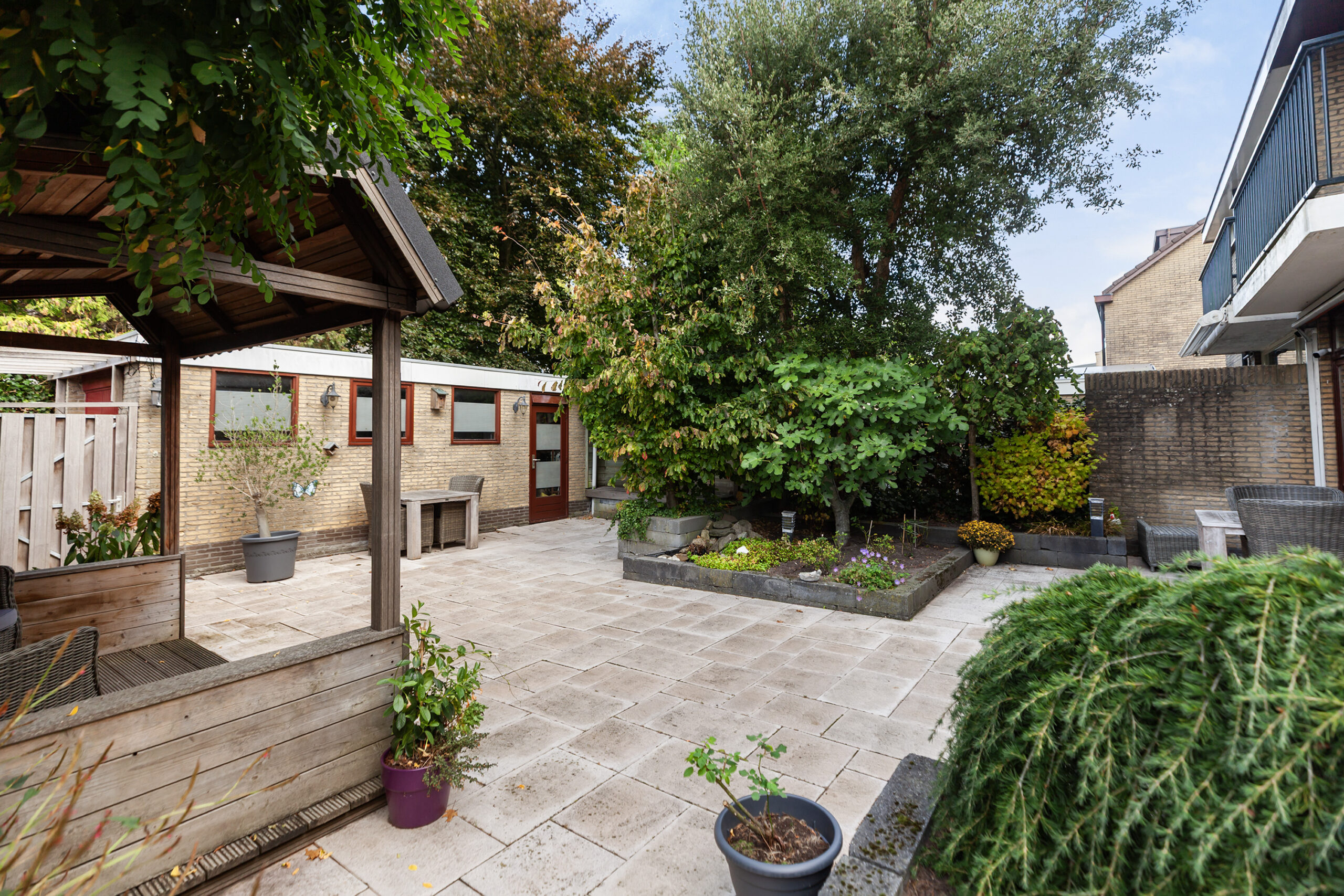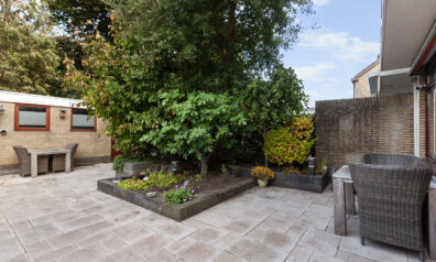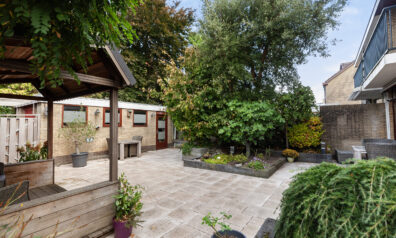De woning staat op een perceel van 291 m² met de achtertuin gesitueerd op het westen. Deze is keurig aangelegd en onderhouden met diverse beplatingen in de plantenborders en een houten overkapping. In de overkapping is ook stroomvoorziening. Daarbij is er een verlichting verspreid door de tuin en heeft u een zonnescherm direct achter de woning.