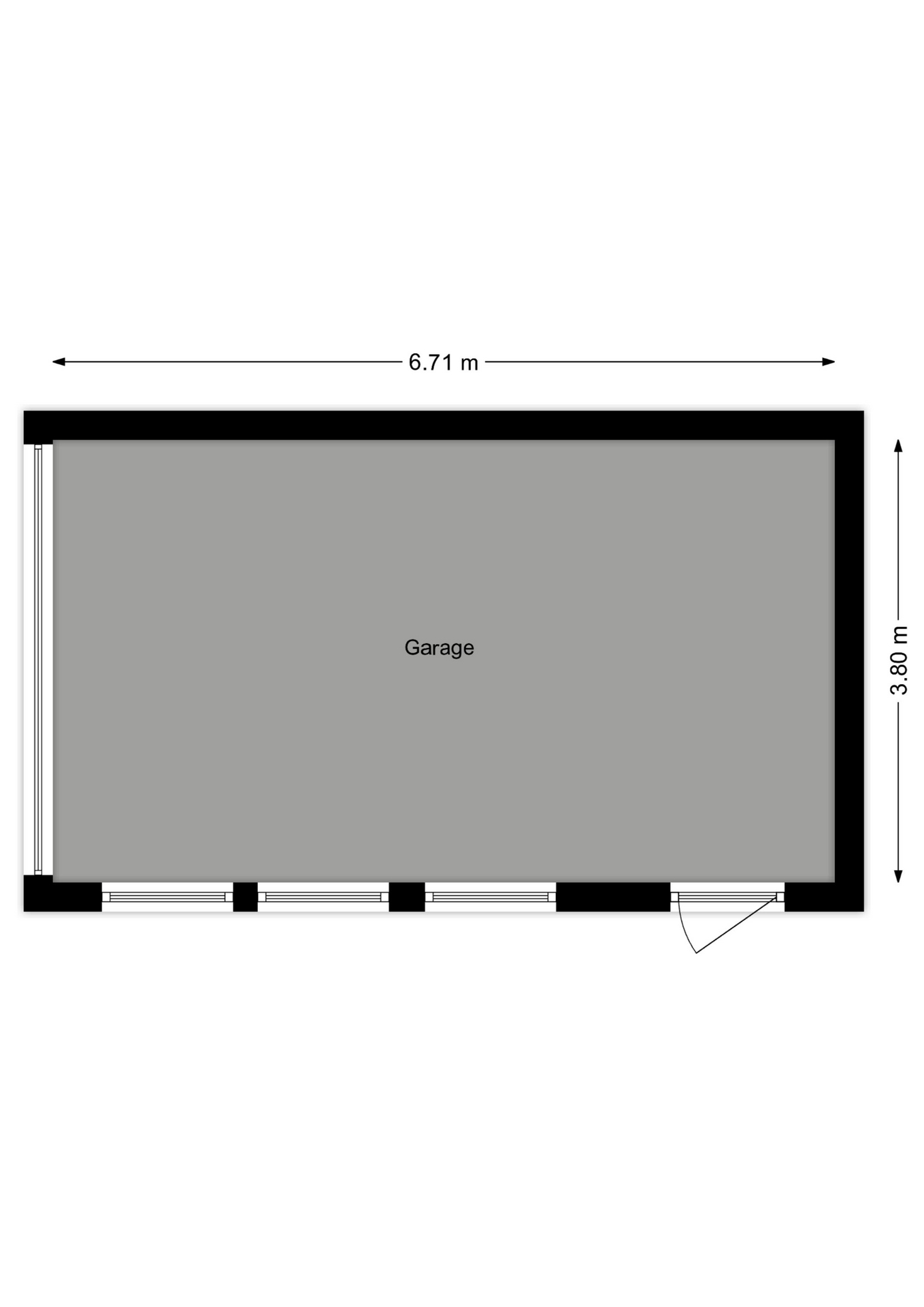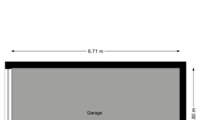 Achter in de tuin staat de grote stenen garage met (kleine) oprit. De garage is circa 6.71 x 3.80m groot en voorzien van een elektrische garagedeur. Naast de garage is er een poort als aan de zijzijde van de woning, zodat u gemakkelijk achterom kunt komen.