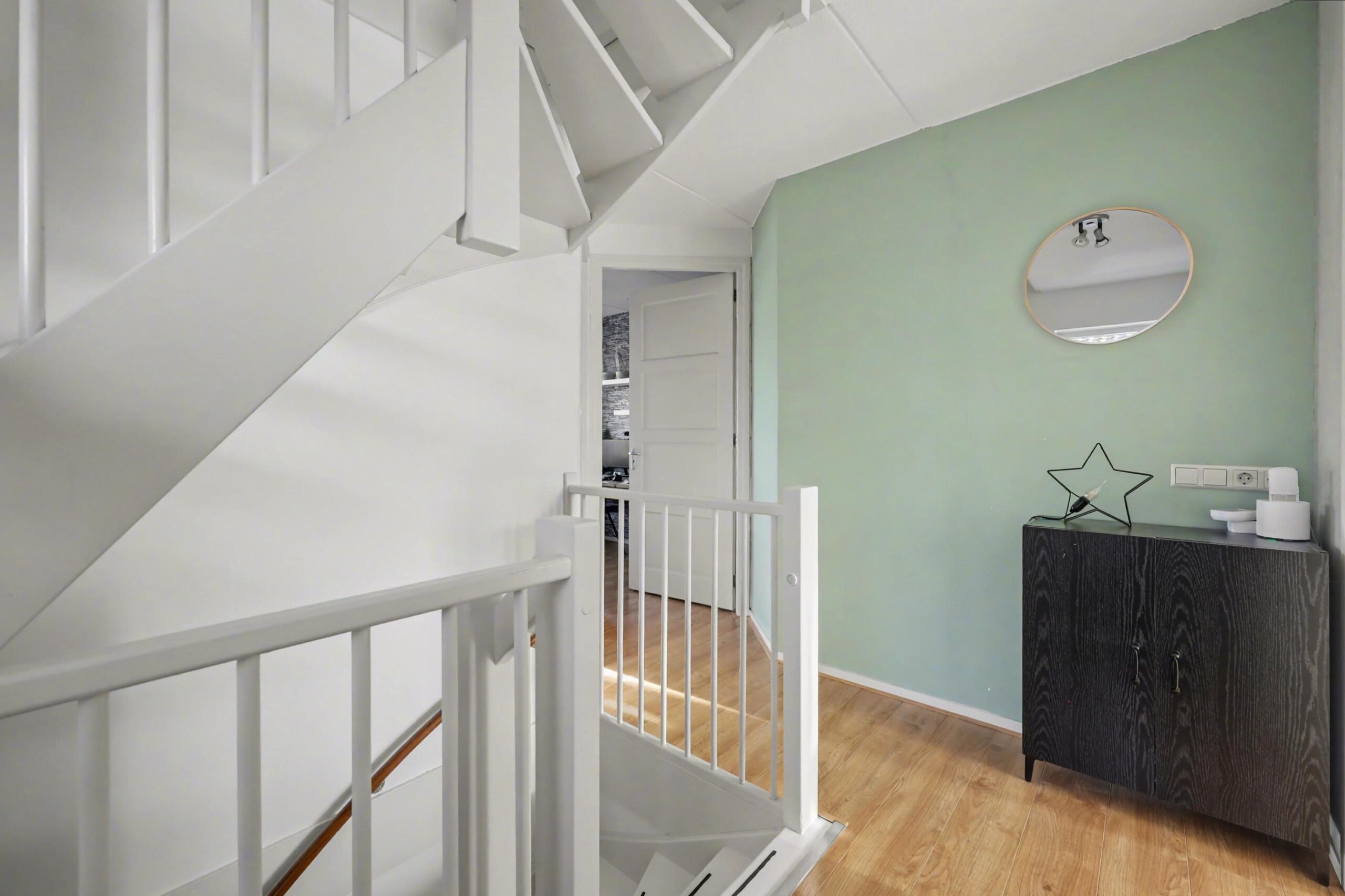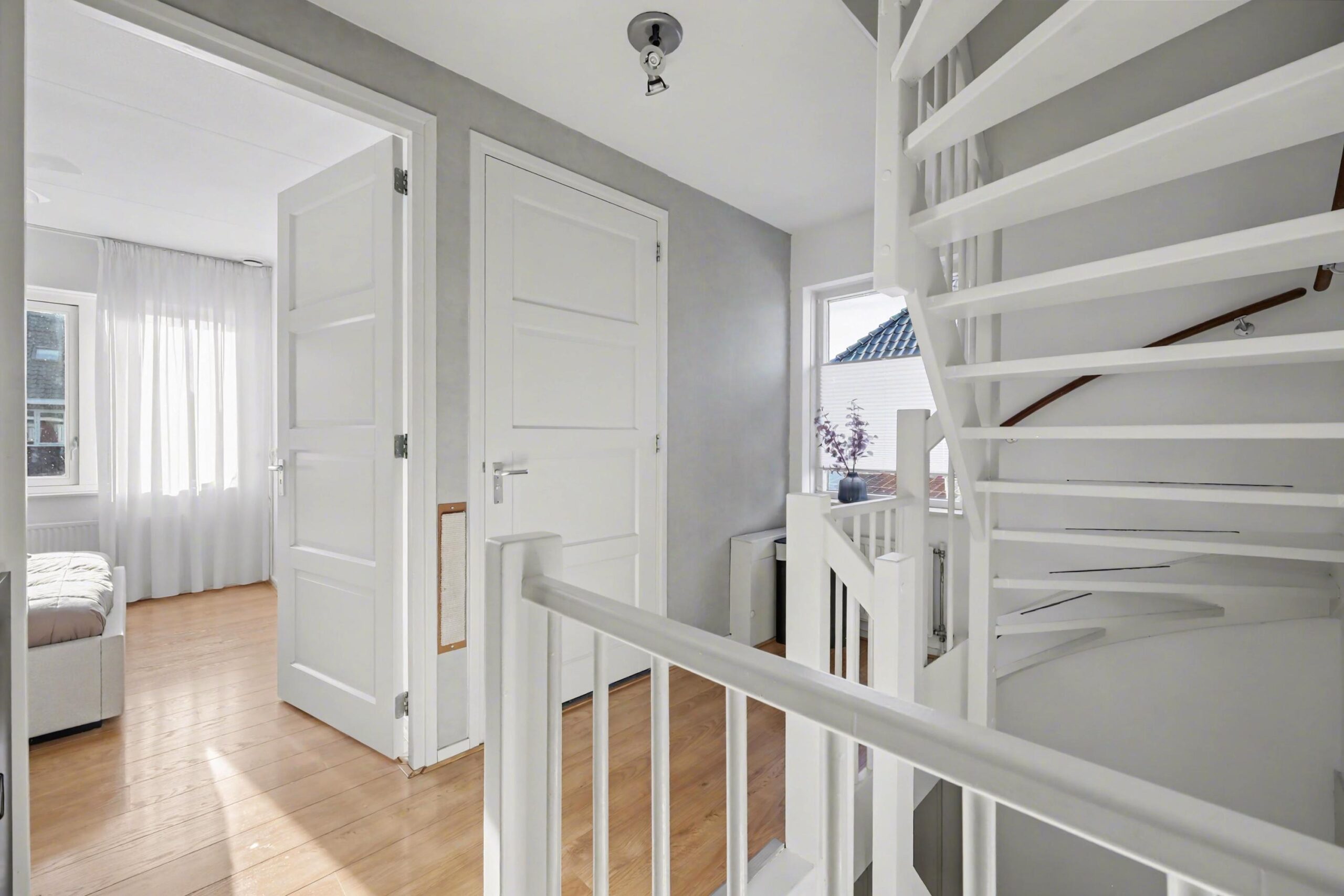 Vanaf de ruime overloop is er toegang tot de drie slaapkamers en de badkamer. Of neemt u de trap naar de tweede verdieping waar u nog een ruime verdieping treft. Kijkt u eens naar de deuren van alle ruimtes, deze paneeldeuren passen perfect in de jaren ´30 stijl. De vloeren zijn afgewerkt met laminaat van het bekende, hoogwaardige merk BerryAlloc.