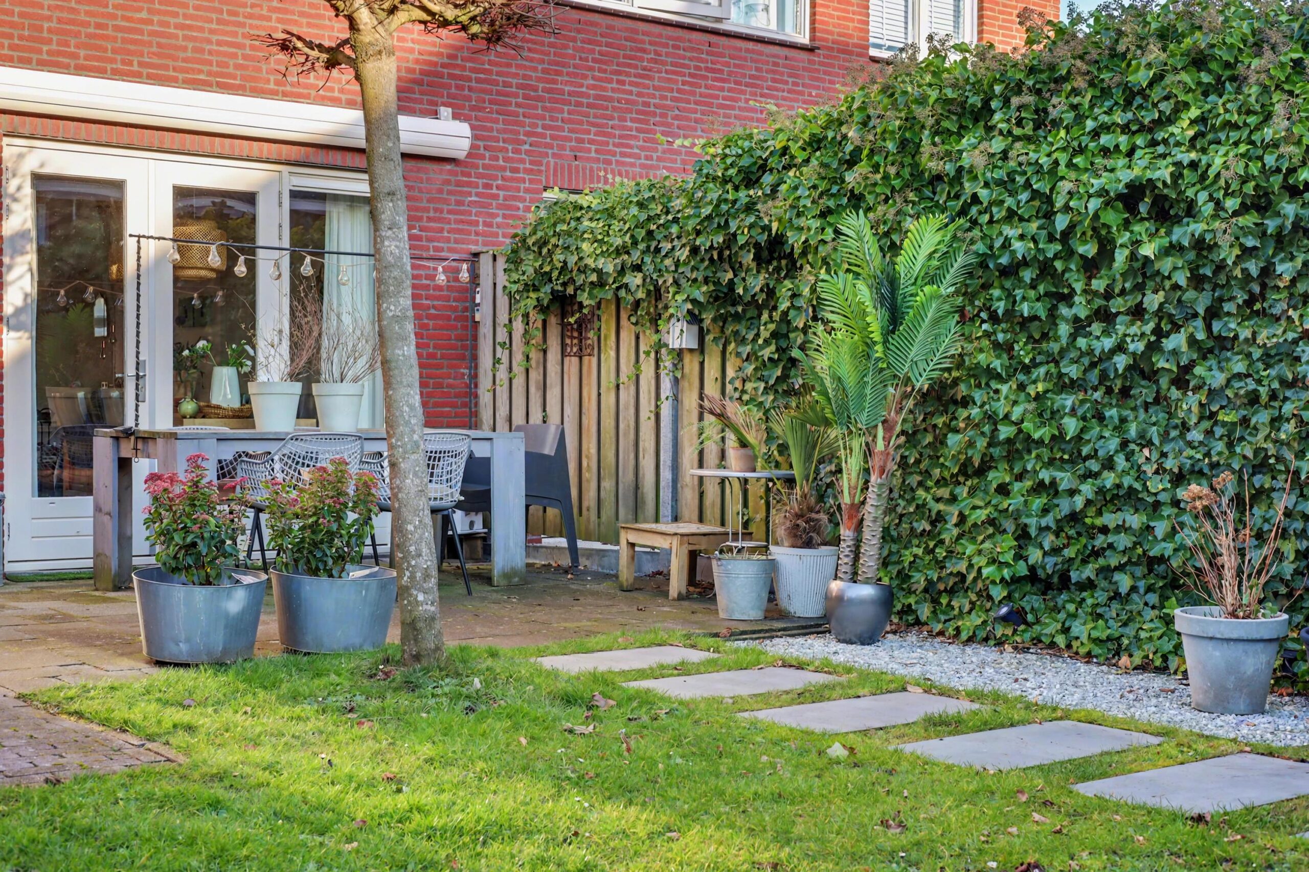 Achter de woning ligt een heerlijke tuin op het zonnige zuidwesten. U waant zich in het groen met alle privacy. Direct achter de woning is er een terras waar u ook een elektrisch zonnescherm hebt. Loopt u verder naar de achterzijde langs het frisgroene gazon, dan komt u bij de houten berging van circa 2.84 x 2.78m groot. Deze is nog maar een enkel jaar geleden nieuw geplaatst met ernaast een grote overkapping. De glazen wanden kunt u openschuiven als u het buitenleven er nog meer bij wilt betrekken. Maar bij kouder weer laat u ze lekker dicht en heeft u hier een beschut plekje, mede door de elektrische heater (ter overname). In de tuin is een extra waterafvoer, welke aansluit op het riool zodat bij hevige regenval het hemelwater snel wegstroomt.