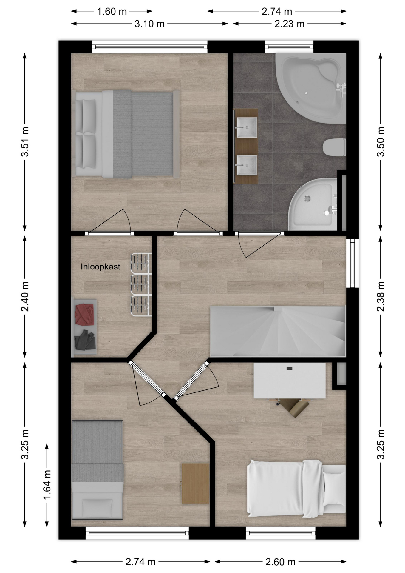 De ouderslaapkamer is gesitueerd aan de achterzijde van de woning. Extra luxe is de inloopkast (circa 2.40 x 1.60m), die zorgt voor volop opbergruimte en een opgeruimde, rustige uitstraling in de kamer.