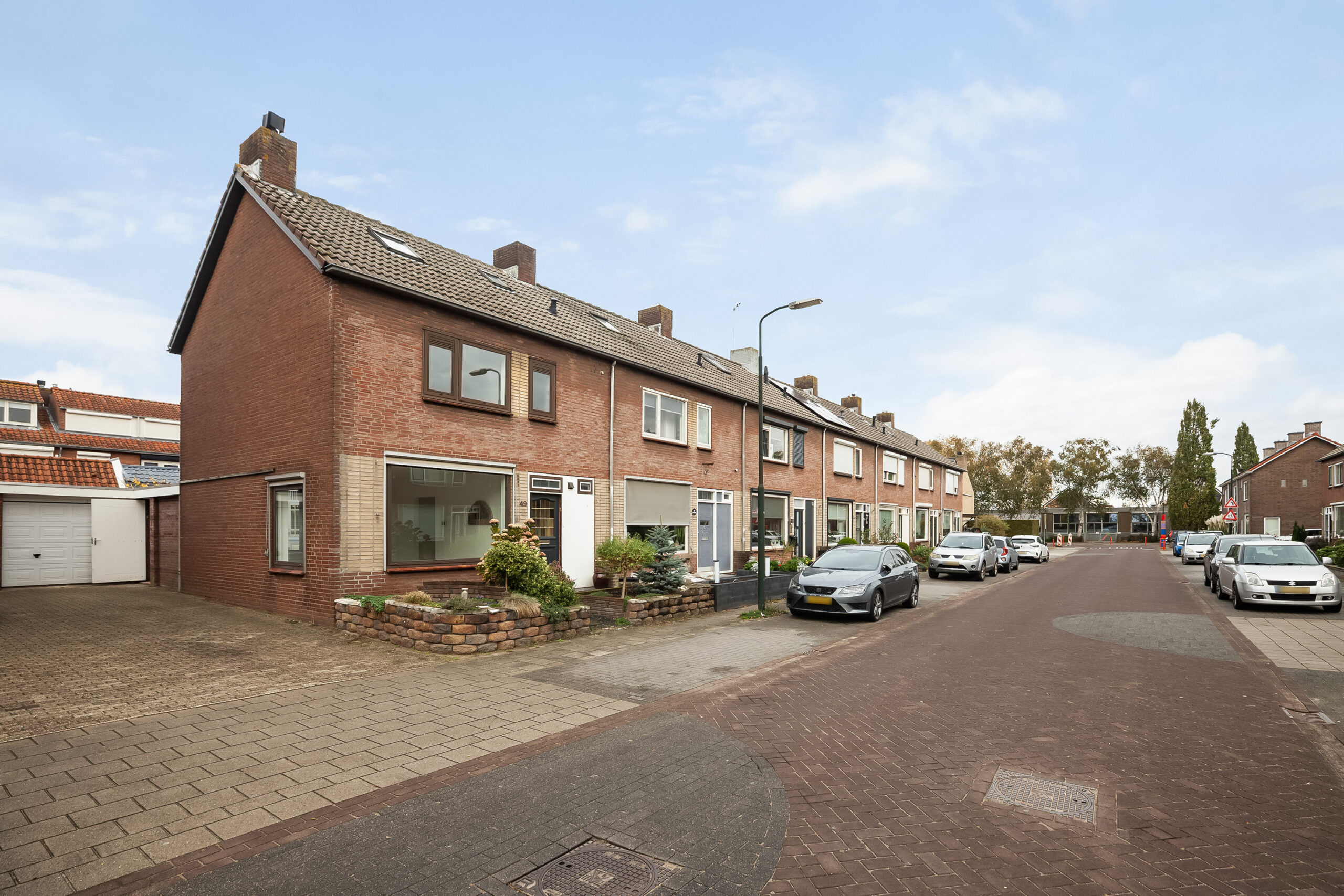 Voor de woning ligt een nette tuin met plantenborders. Aan de zijzijde heeft u de oprit en de poort naar de achtertuin.