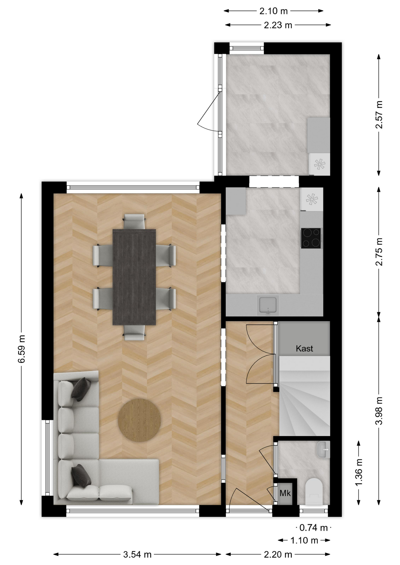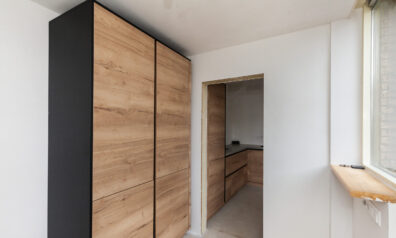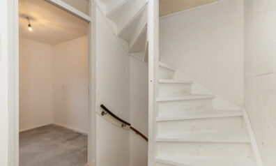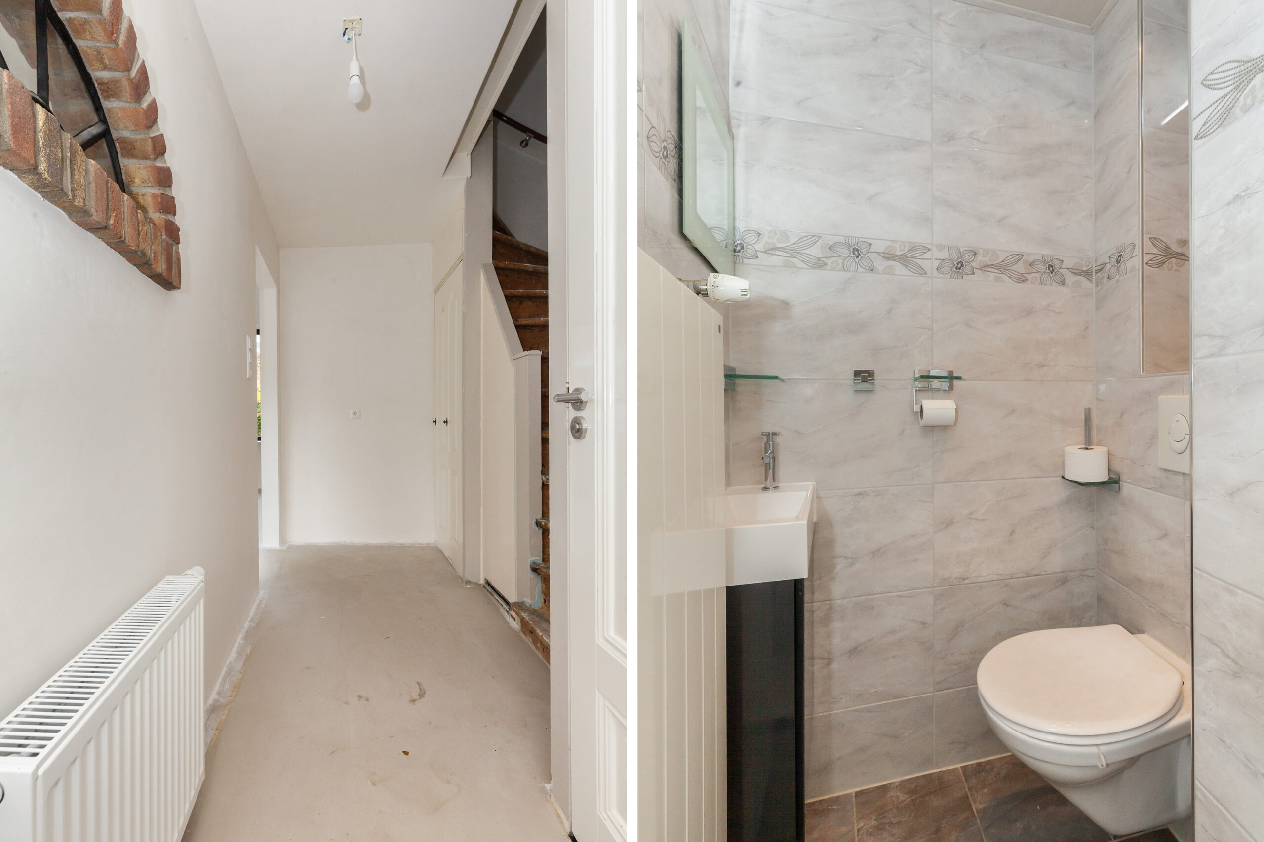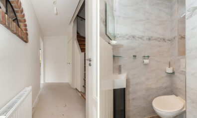 Via de voordeur aan de voorzijde komt u binnen in deze hal. Aan de rechterzijde is de meterkast (vernieuwd en uitgebreid met diverse groepen), toiletruimte en de trap naar de verdieping. Onder de trap is er een inloopkast waar u allerhande spullen kunt opbergen.