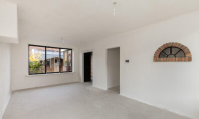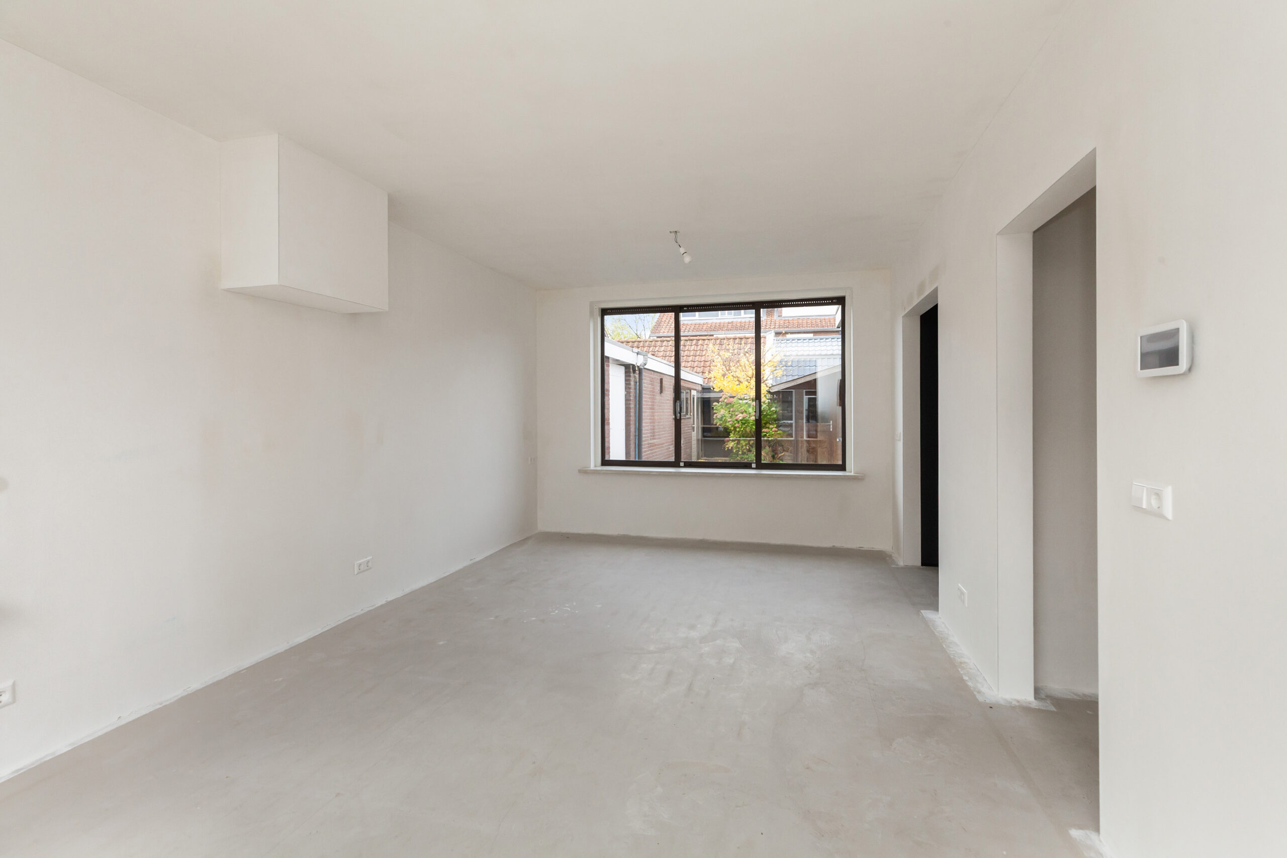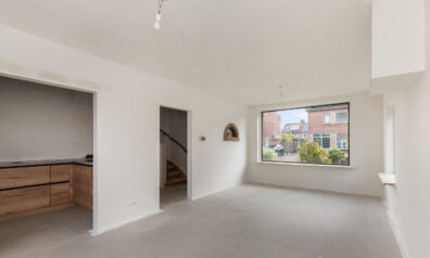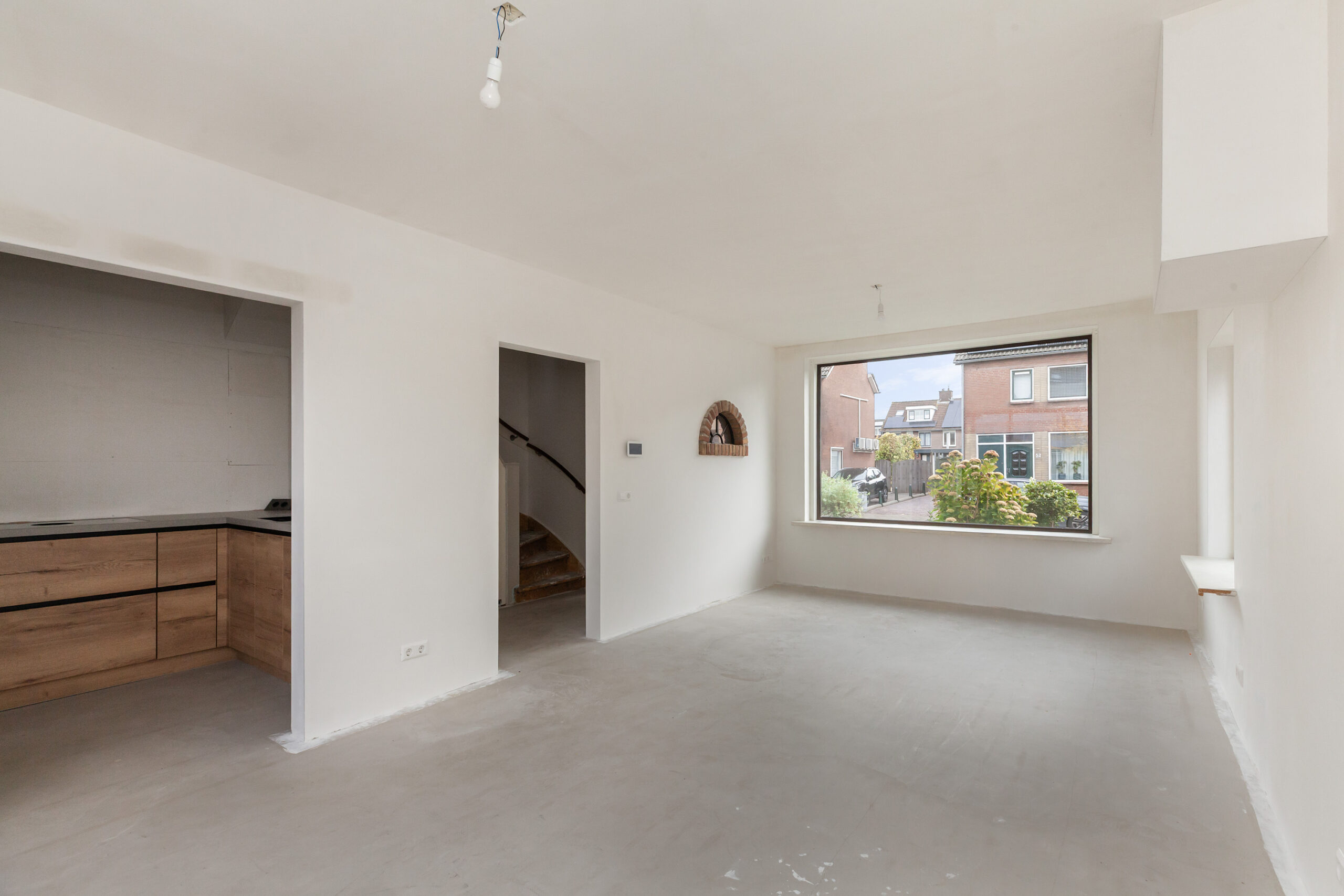 De woonkamer is een fijne doorzonkamer en kenmerkt zich door de grote raampartijen, tevens ook in de zijgevel. Er is een leuk doorkijkje naar de hal via het halfronde raampje. U kunt het geheel indelen naar eigen wens en aan de achterzijde is de open toegang tot de keuken. De ramen aan de voorzijde zijn voorzien van screens.