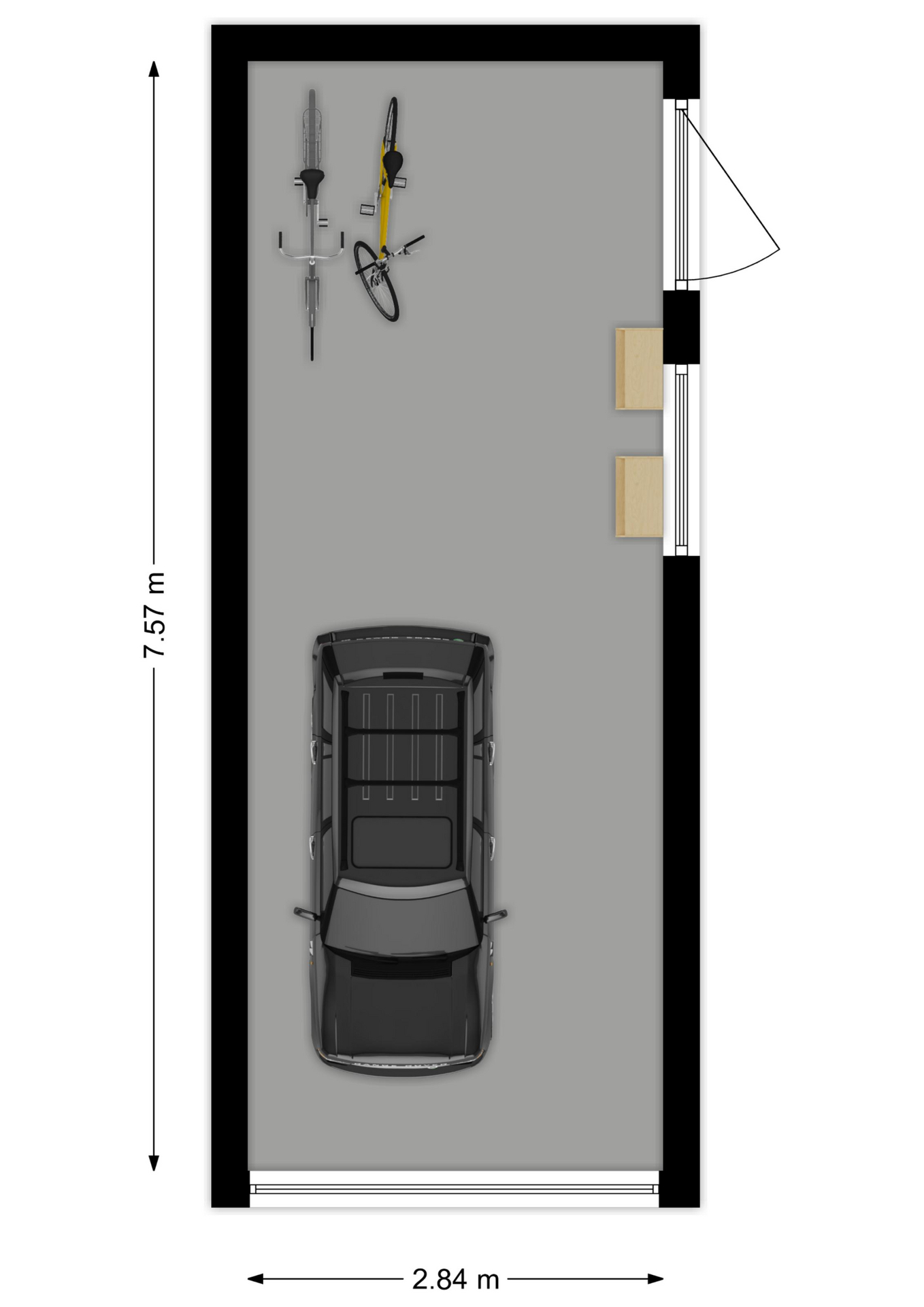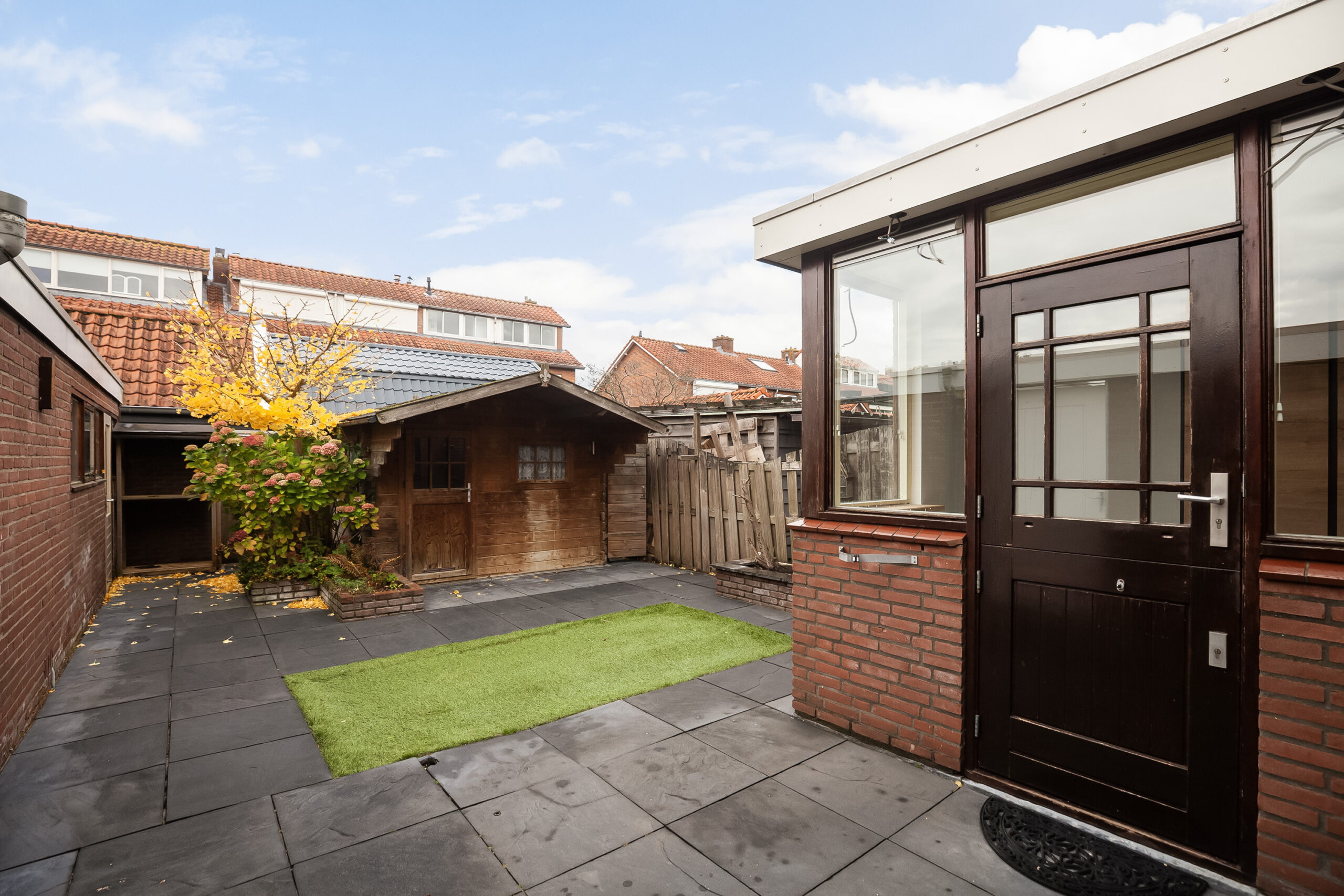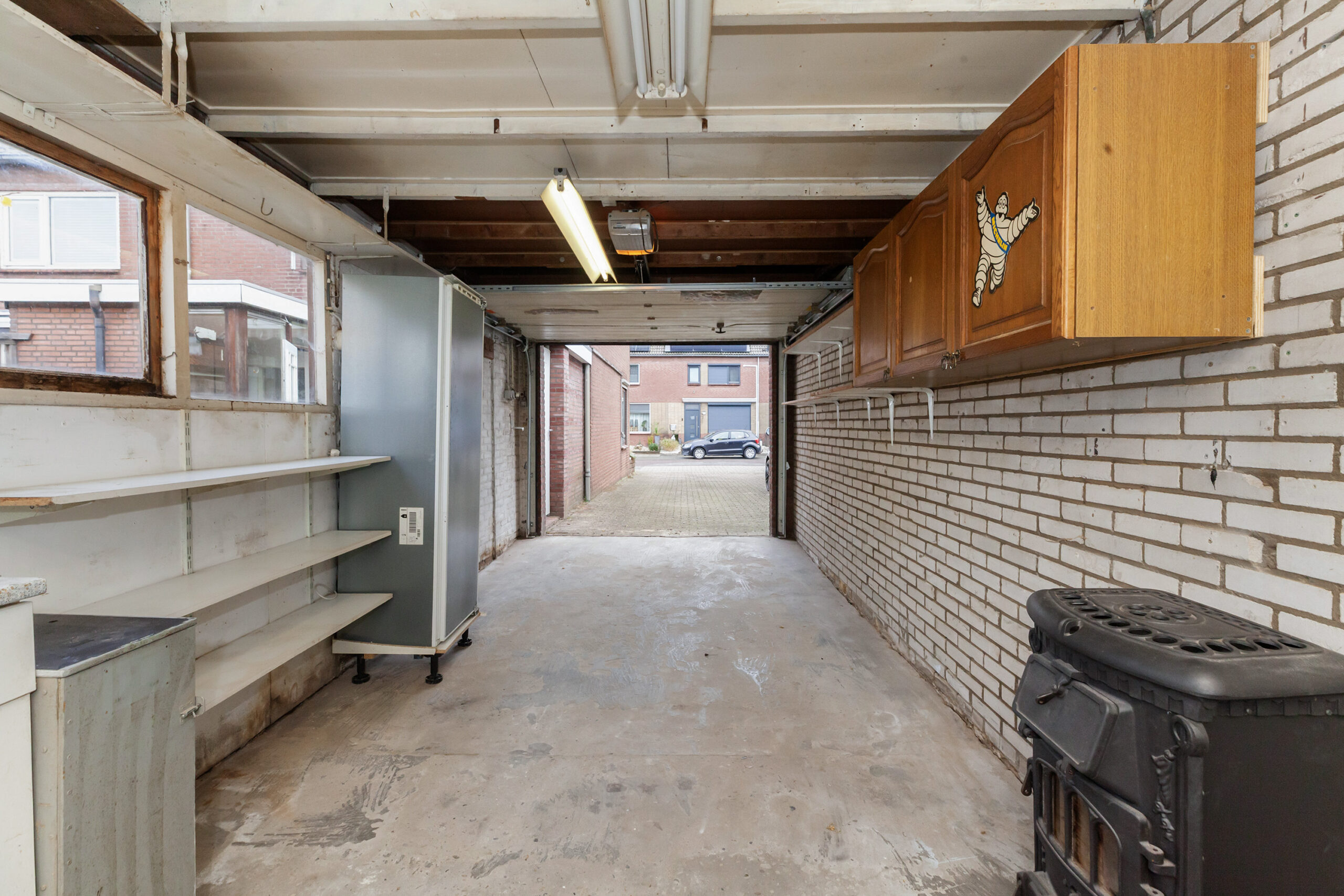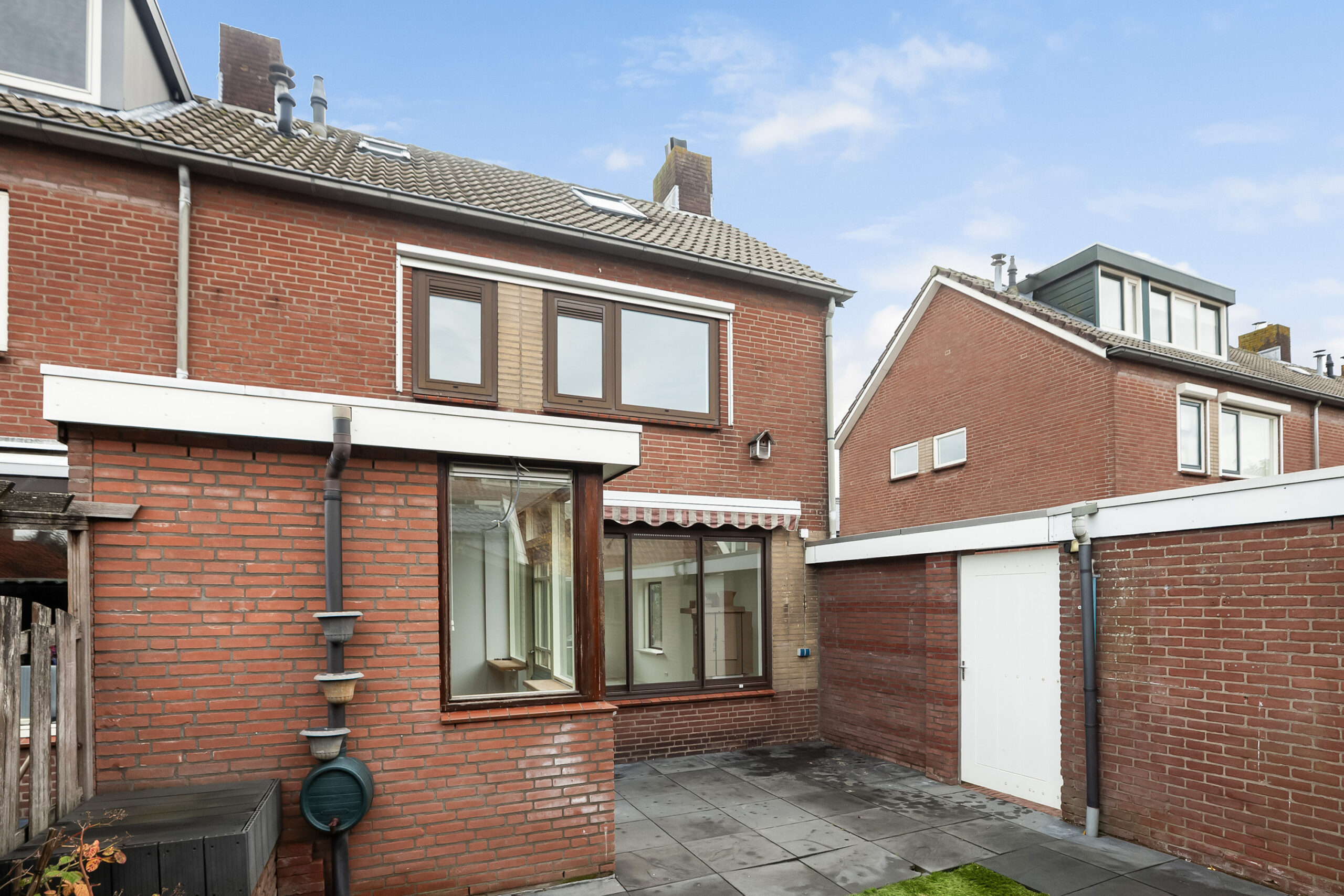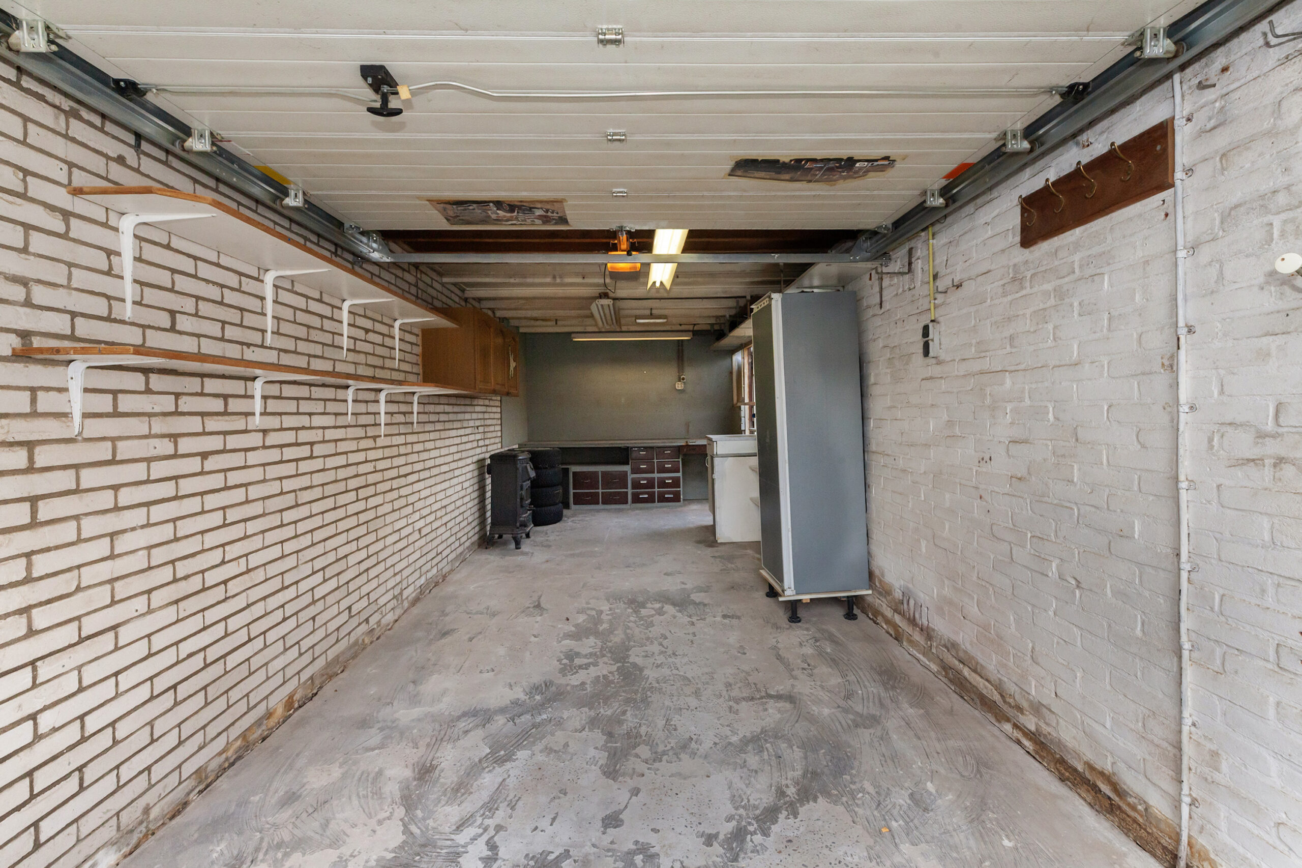 Aan de achterzijde heeft u een onderhoudsvriendelijke tuin, grotendeels aangelegd met tegels. Achterin de tuin staat een houten berging van circa 2.86 x 2.40m. Er is ook een poort naar de achtergelegen brandgang. Via de poort aan de zijzijde kunt u achterom komen en deze grenst aan de oprit. Van een parkeerplek bent u hier altijd voorzien! Parkeren kan op de eigen oprit, maar ook in de garage. Deze is circa 7.57 x 2.84m groot en voorzien van een elektrische roldeur.