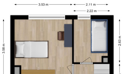 Deze slaapkamer is eveneens aan de achterzijde gesitueerd.