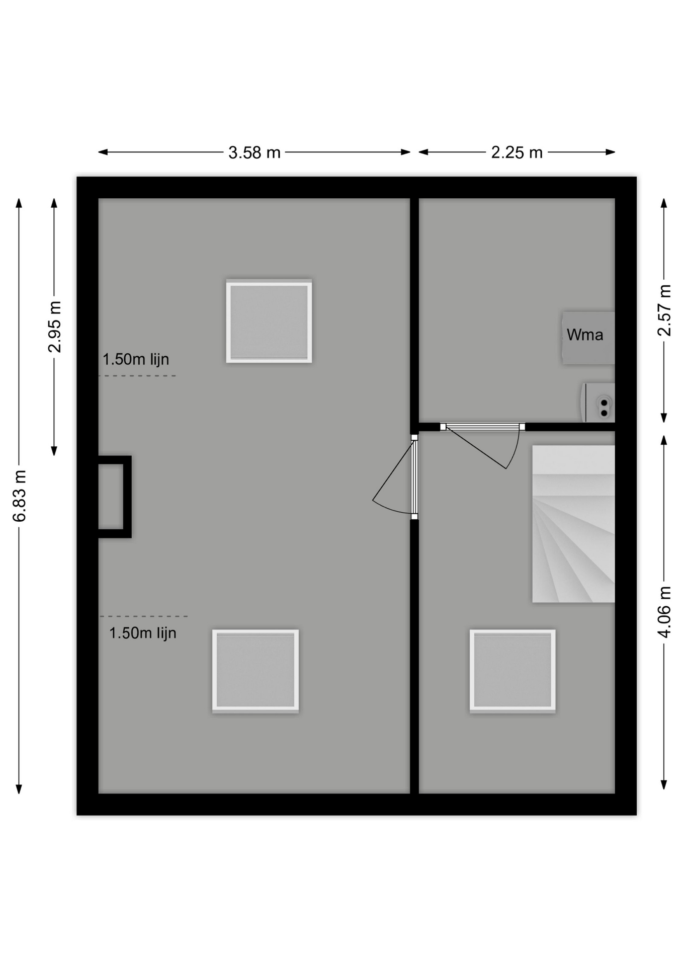De tweede verdieping verkeert nog in een basisstaat en kunt u geheel afwerken naar eigen wens. De schuine daken zijn wel geïsoleerd.